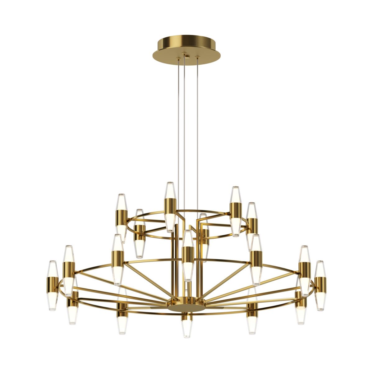 Цвет арматуры — латунь. Двойной плафон, выполненный из двух типов высококачественного акрила - матовый и прозрачный. Объемное освещение с равномерным распределением света во всех направлениях. LED-источник света. Комфортный для глаз свет при значительном световом потоке. Регулируемая высота подвесных моделей.