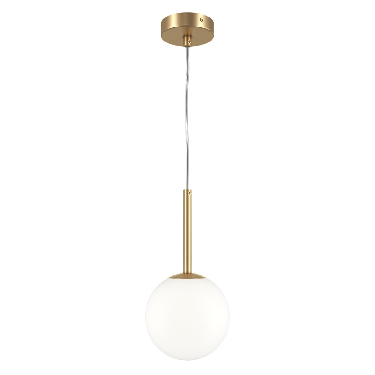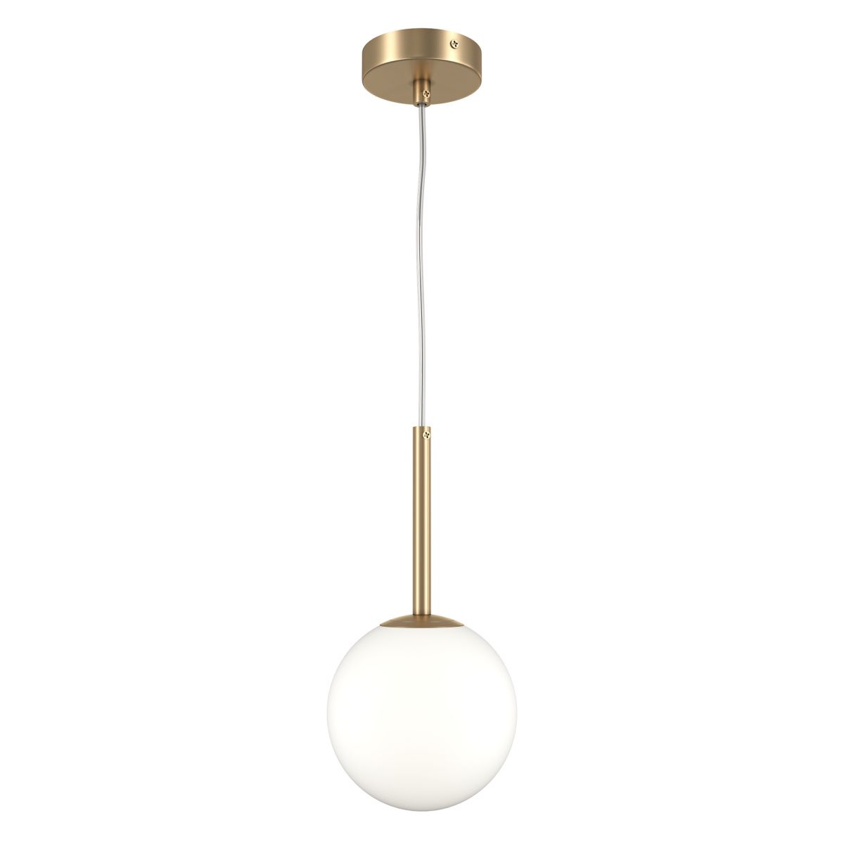 Материал арматуры – металл, цвет - золото, белый, черный. Округлые плафоны из матового белого стекла. Универсальные формы, минималистичный дизайн. Цоколь - E14. Лампы не входят в комплект. Регулируемая высота подвесных светильников.