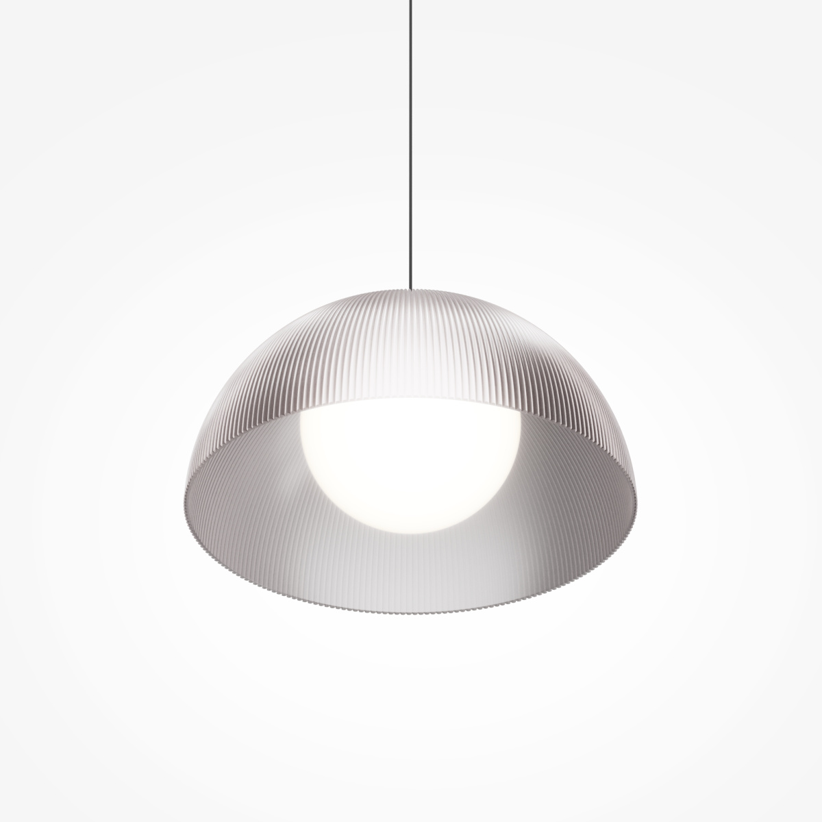 В серии представлены подвесные светильники двух диаметров абажура: 400мм и 600мм. Абажур из рельефного полупрозрачного акрила дымчатого цвета. Встроенный LED-источник с цветовой температурой 3000K. Свет мягко рассеивается матовым акрилом сферической формы. Высокий индекс цветопередачи CRI 90. Арматура из металла с черным покрытием сэнди". Длина провода регулируется до 3000 мм. Предназначены для основного рассеянного освещения. Универсальное применение в жилых и коммерческих интерьерах."