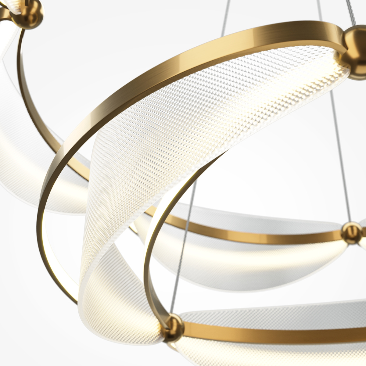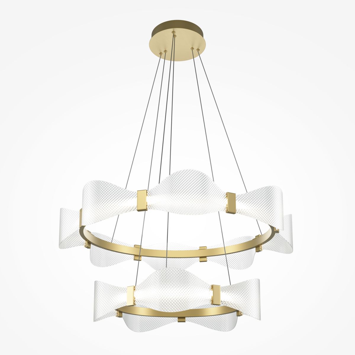 Материал арматуры - металл, цвет - латунь. Декоративные элементы из прозрачного фактурного  акрила. LED источник света с цветовой температурой 3000К.  Подвесные светильники — регулируемый провод длиной 3 метра. Настольная и напольная модель с функцией диммирования.