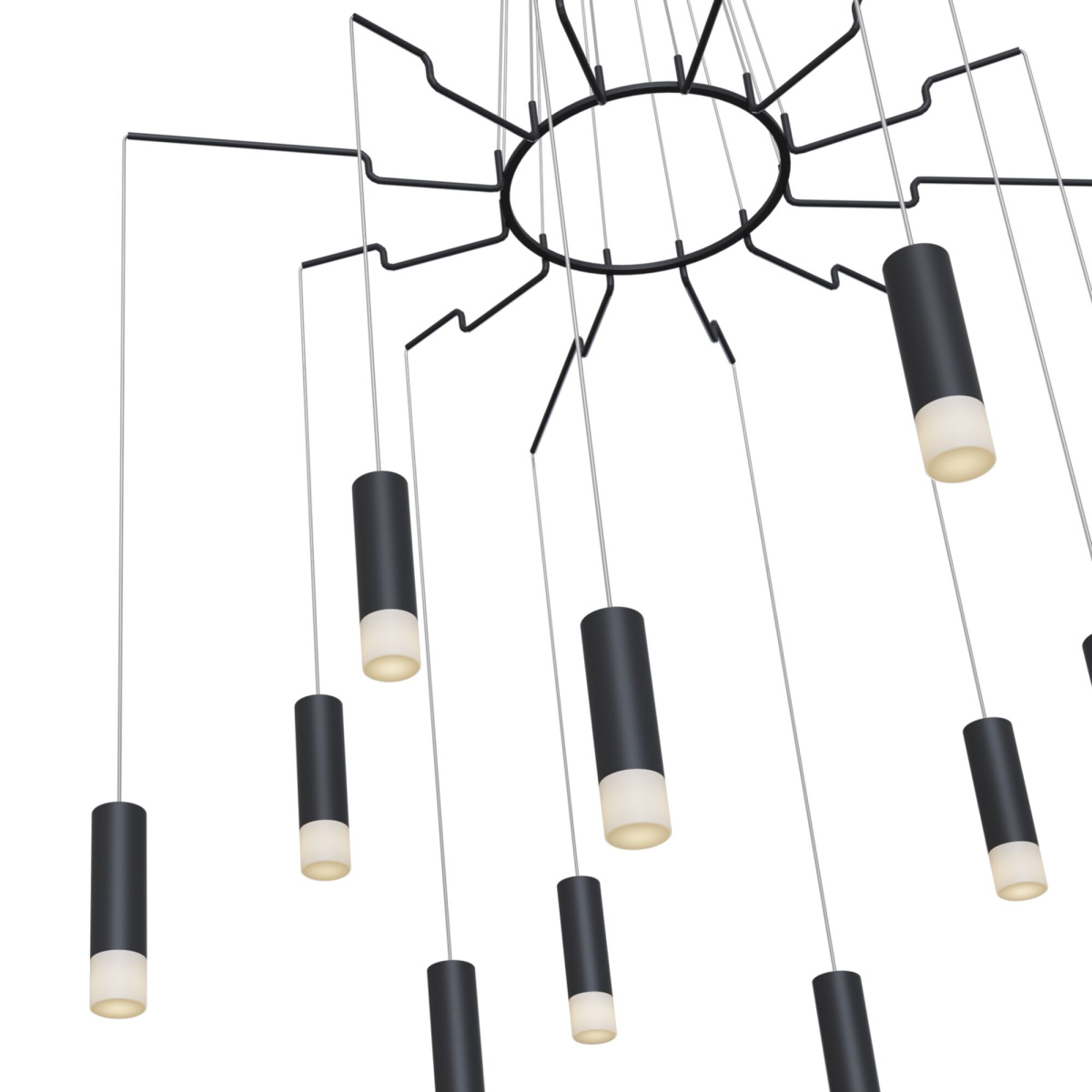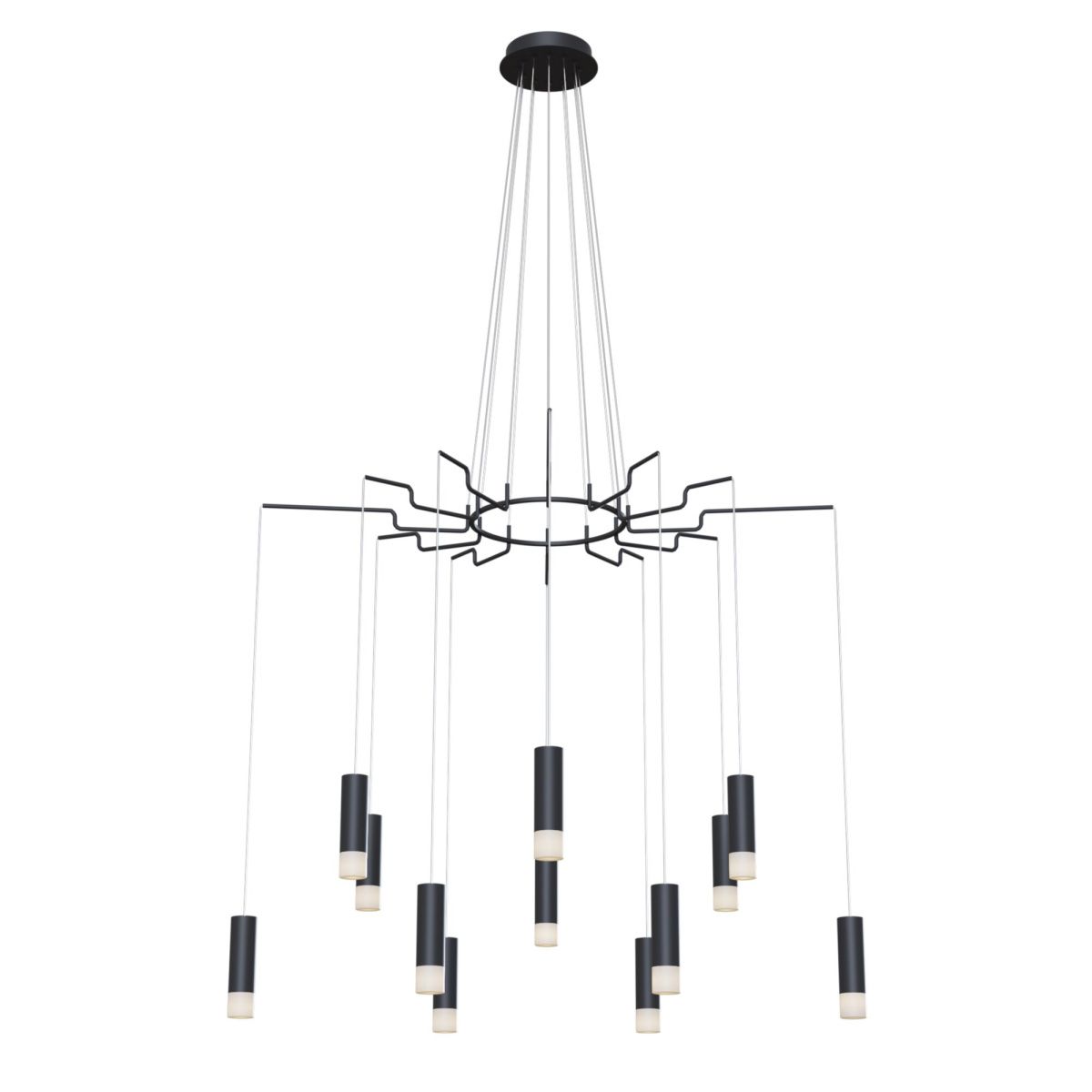 Арматура – металл, цвет – черный и белый. Плафоны-цилиндры – металл в тон арматуре, акриловые вставки. Визуально легкий силуэт. Регулируемая высота.