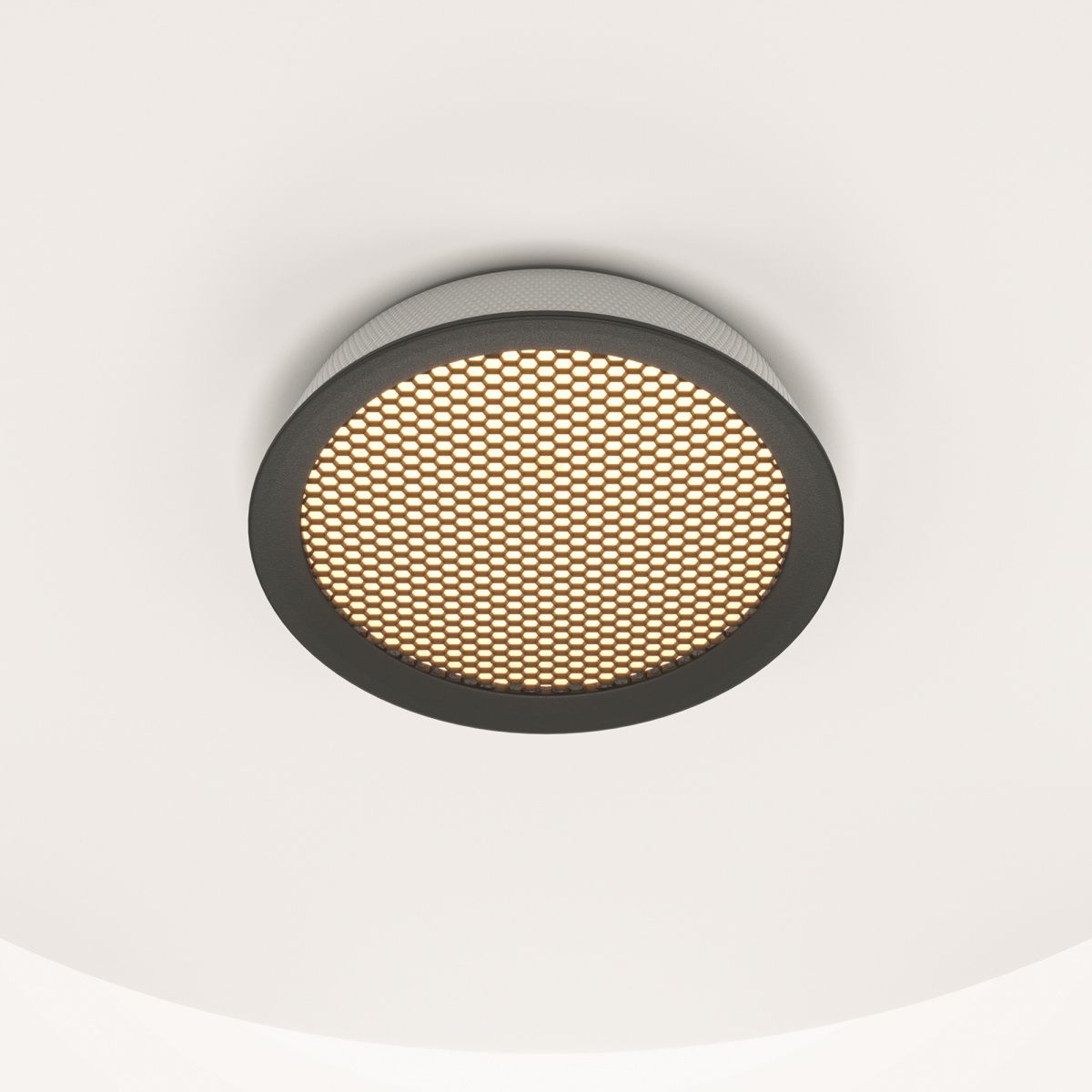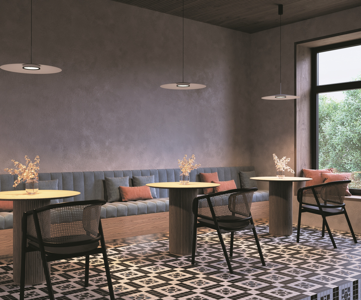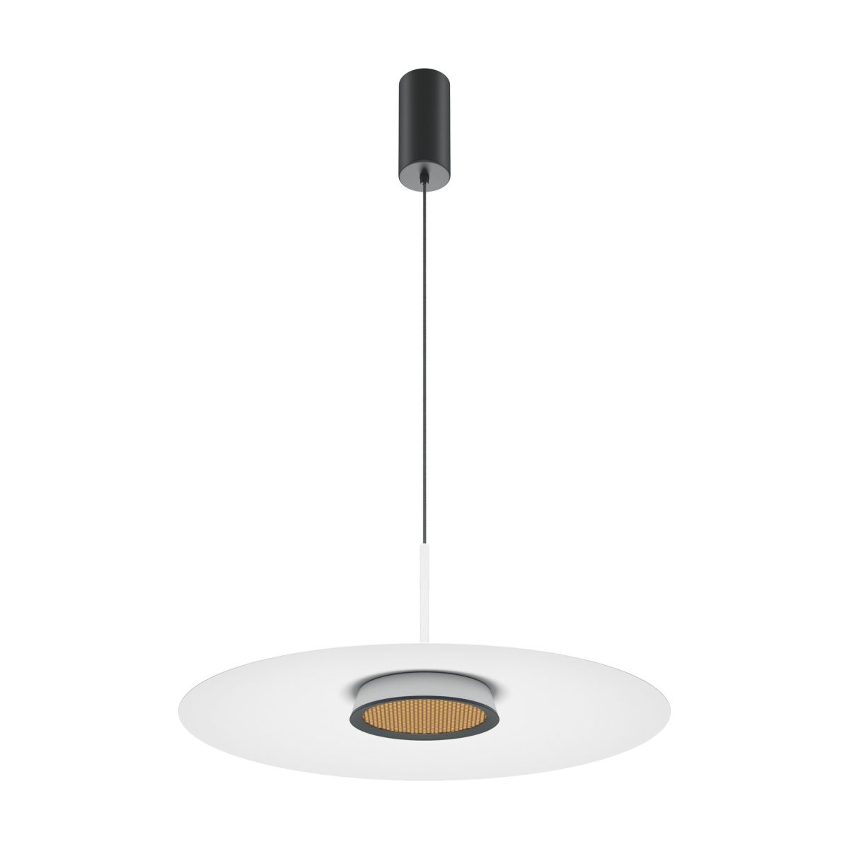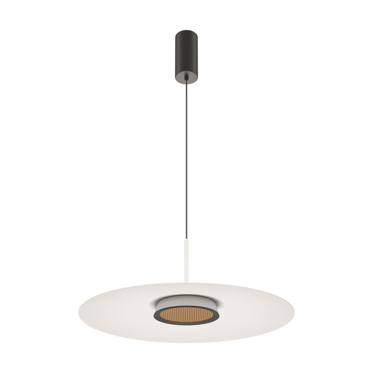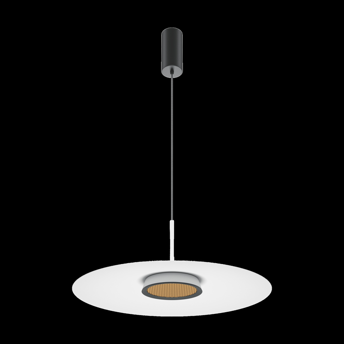 Металлический корпус, цветовая палитра - черный, белый, золото и терракотовый. Два  вида плафонов: «таблетка» с графичным рельефом из ассиметричных линий; «таблетка» + идеально-гладкая металлическая «тарелка». Дизайн вдохновлен супрематической эстетикой.  LED-источник света, цветовая температура - 3000К. Регулируемый провод - 3 метра.