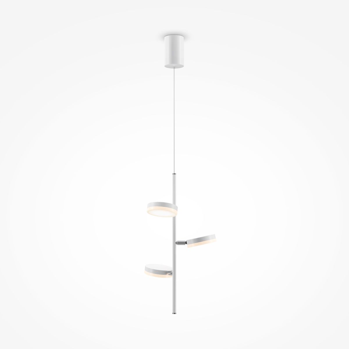 Плафоны и арматура из металла. Цвет рассеивателя — белый, арматура черная или белая. Конструкция предусматривает шарнирный механизм, позволяющий регулировать направление света и высоту светильников. Плафоны вращаются на 90 и 360° (в вертикальной и горизонтальной плоскостях). Угол рассеивания — 120 градусов. Тип света — рассеянный.