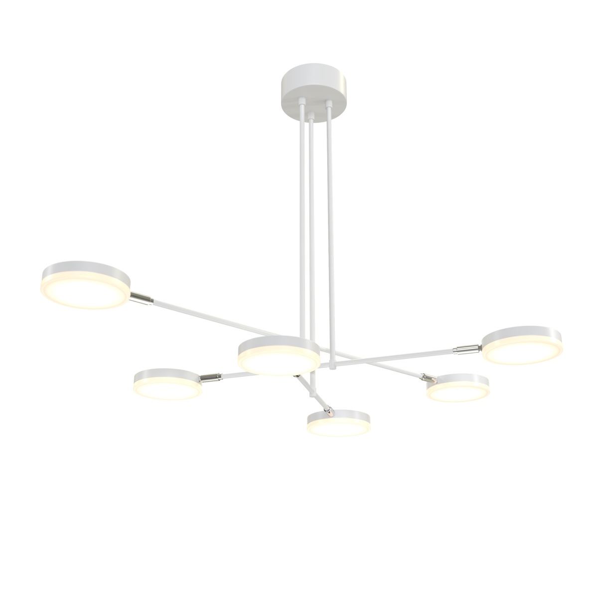 Плафоны и арматура из металла. Цвет рассеивателя — белый, арматура черная или белая. Конструкция предусматривает шарнирный механизм, позволяющий регулировать направление света и высоту светильников. Плафоны вращаются на 90 и 360° (в вертикальной и горизонтальной плоскостях). Угол рассеивания — 120 градусов. Тип света — рассеянный.