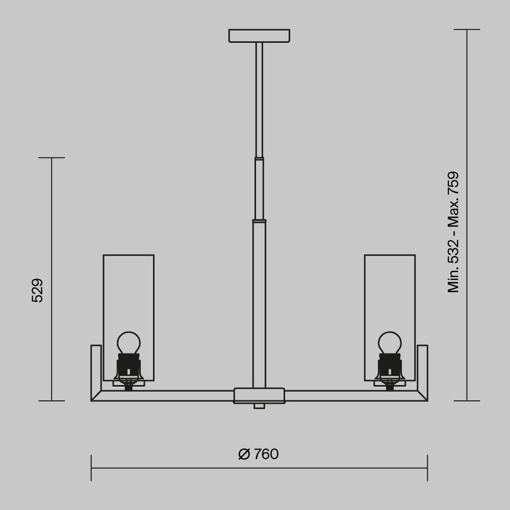 Арматура из металла, оттенок — латунь. Стеклянные плафоны в белом цвете. Часть элементов окрашена в контрастный черный оттенок. Геометрия в дизайне: цилиндрические плафоны, прямоугольные рожки.