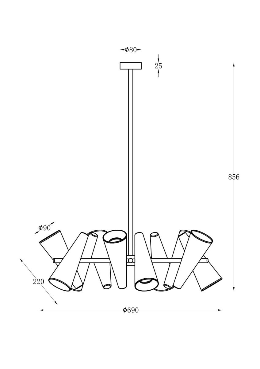 Металлическая арматура в двух оттенках: белый и черный. Плафоны-конусы выполнены из алюминия. Оттенки: белый, латунь. Рожки вращаются, можно менять направление света. Высота регулируется с помощью разборного центрального элемента.