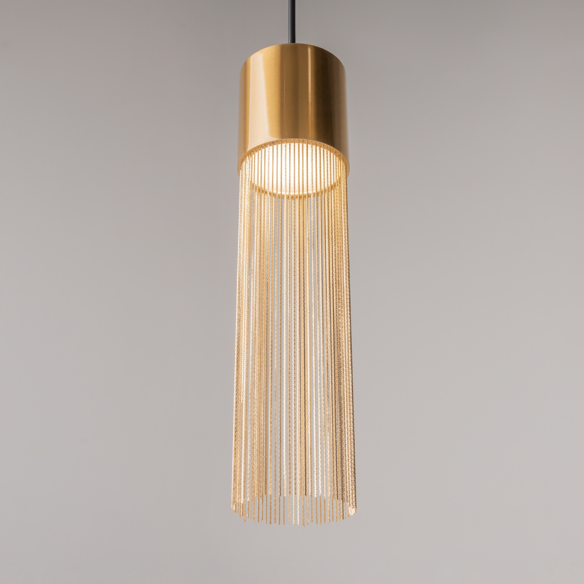 Металлическая арматура, цвет - золото. Мотивы ювелирного искусства в дизайне. Изящные цепочки на корпусе светильника создают переливы бликов. LED источник света. Цветовая температура - 3000К. Регулируемая высота подвесного светильника.
