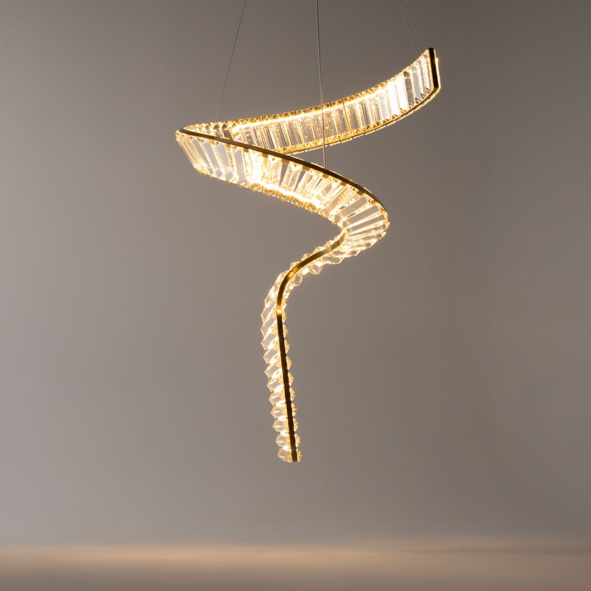Металлическая арматура в золотом цвете. Асимметричный хрустальный декор. Трендовая форма окружности. LED-источник света с температурой 4000К. Высокий индекс цветопередачи 90Ra.