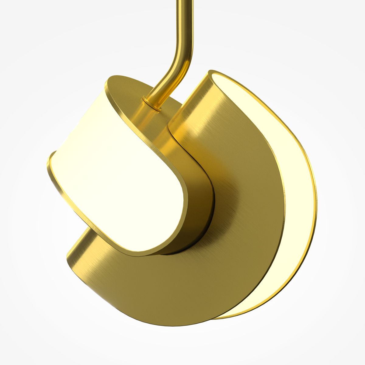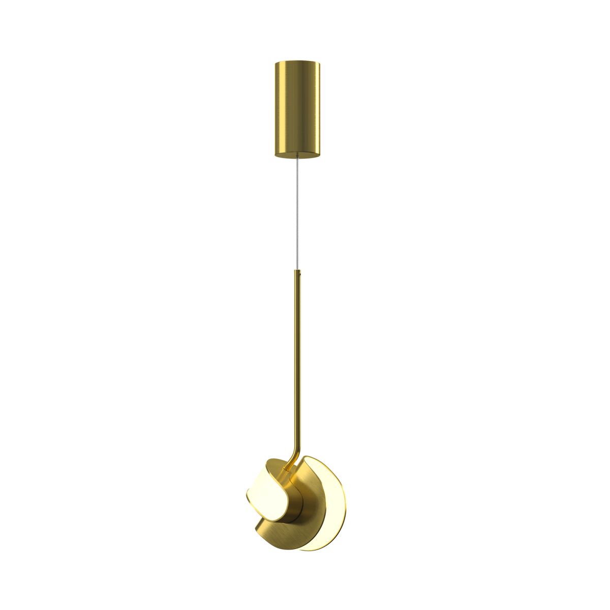 Динамичный дизайн с футуристичной эстетикой, сочетание двух полусфер. Арматура: алюминий цвета сатинированной латуни. Рассеиватель: матовый акрил, установленный заподлицо. Магнитная потолочная чаша без видимых креплений. Два источника света для равномерного верхнего и нижнего освещения. Трехступенчатый переключатель температуры (2700K-3000K-4000K). Рекомендуется для одиночного использования и композиций с разной высотой подвеса. Создает объемное многосценарное освещение.
