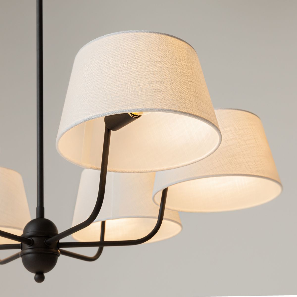 Серия светильников Modesto — это воплощение спокойствия, размеренности и тихой роскоши.  В серии представлены подвесные светильники (люстры) на 6 и 8 плафонов и настенные бра.  Дизайн объединяет фактурность текстиля и гибкость металла. Металлическая арматура в двух цветах: черном с антибликовым покрытием и латунном с сатинированным финишем. Разборная штанга адаптирует высоту люстры. Сменный источник света с цоколем E14.  Светильники Modesto прекрасно смотрятся в любых сценариях интерьера.