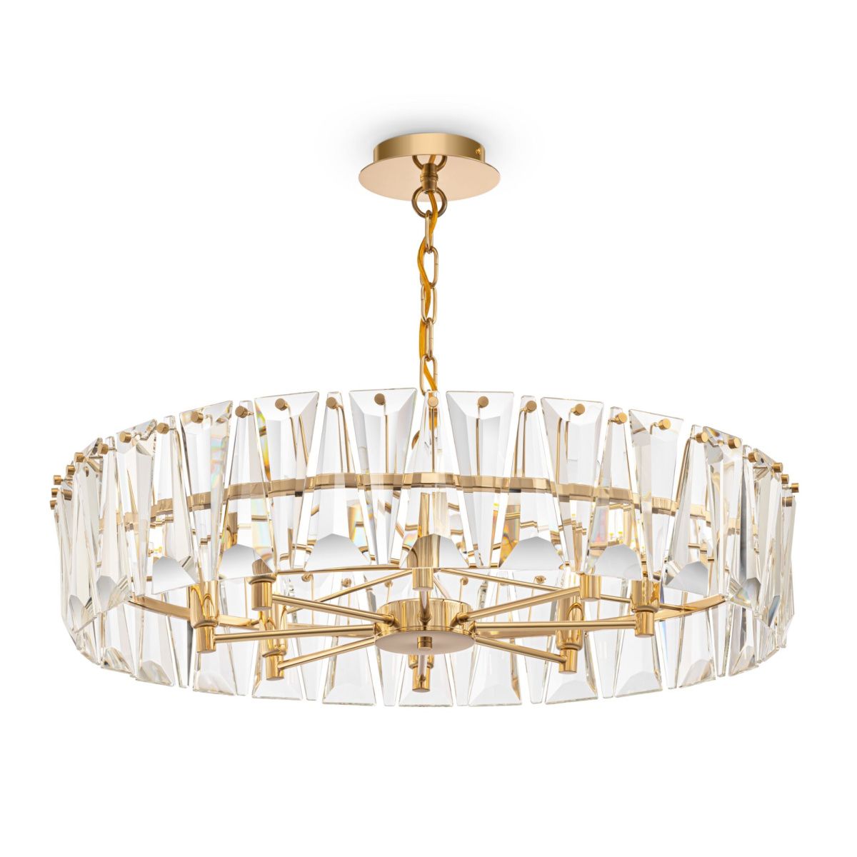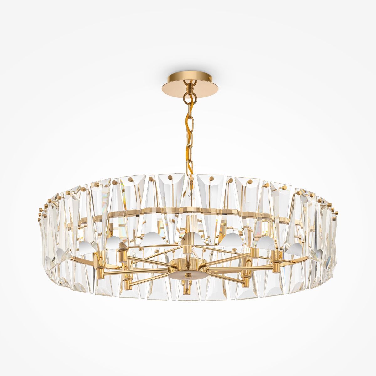 Материал арматуры – металл, оттенки – хром и золото. Декор – массивные крис таллы сложной огранки. Высота подвесных моделей регулируется длиной цепи. Источник света - лампа с цоколем Е14.