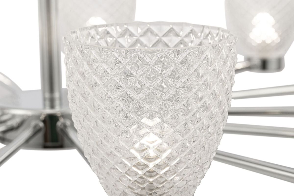 Серия современных светильников. Плафоны сделаны из прозрачного стекла со стеганным" эффектом. Металлические детали выполнены в цвете хром. Благодаря чему модели выглядят легко и сдержанно. Они станут украшением в любом интерьере, дополнив его своей оригинальностью. Высоту подвесных светильников можно отрегулировать длиной цепи."
