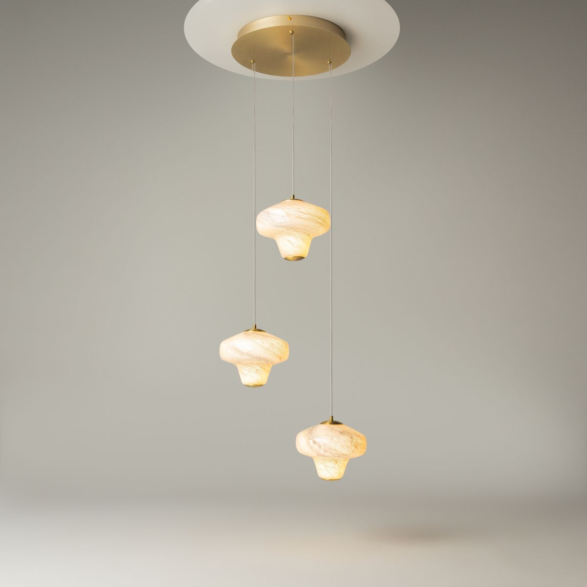Серия подвесных светильников Sirocco – это история о совместном путешествии двух стихий. Форма стеклянного плафона напоминает вихрь воздушных потоков, а рисунок – танец песчинок. Серия представлена в двух цветах стекла: белом и янтарном, металлическая арматура в цвете сатинированной латуни. Встроенный LED-источник (3000K). Светильники Sirocco можно устанавливать в качестве одиночных акцентов или формировать композиции, так как молочный и оранжевый оттенки гармонично сочетаются друг с другом.