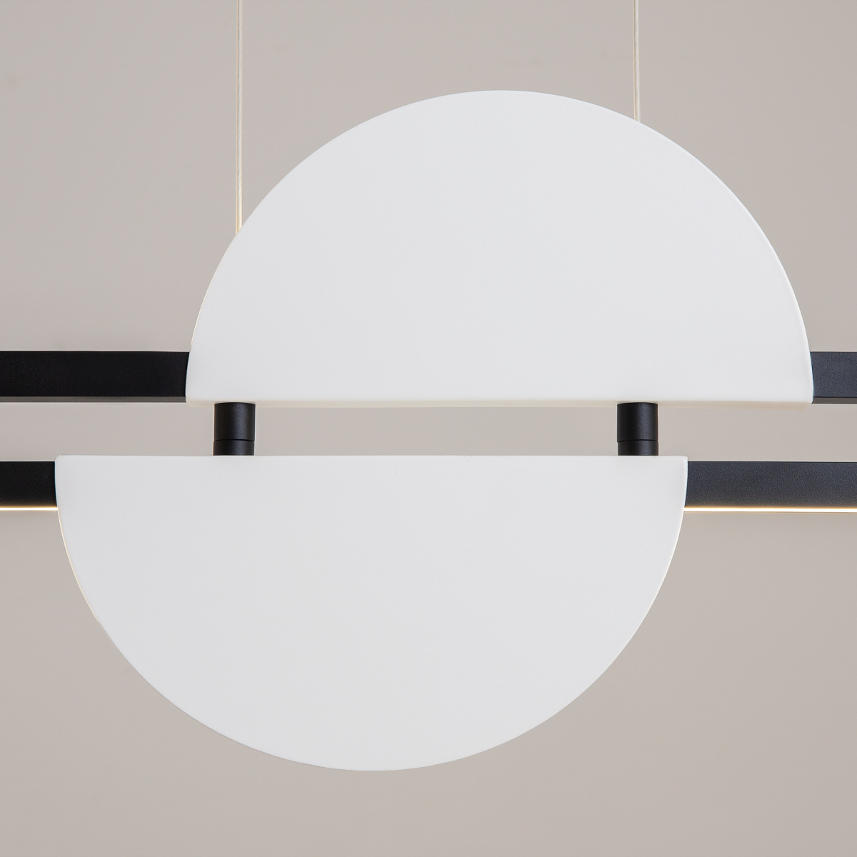 Материал арматуры — алюминий, оттенки — белый,  черный, матовое золото. Трендовая асимметрия в  дизайне. Регулируемая высота. Интегрированные  LED-источники, акриловый рассеиватель. Цветовая  температура 3000К или 4000К – устанавливается на  этапе монтажа.