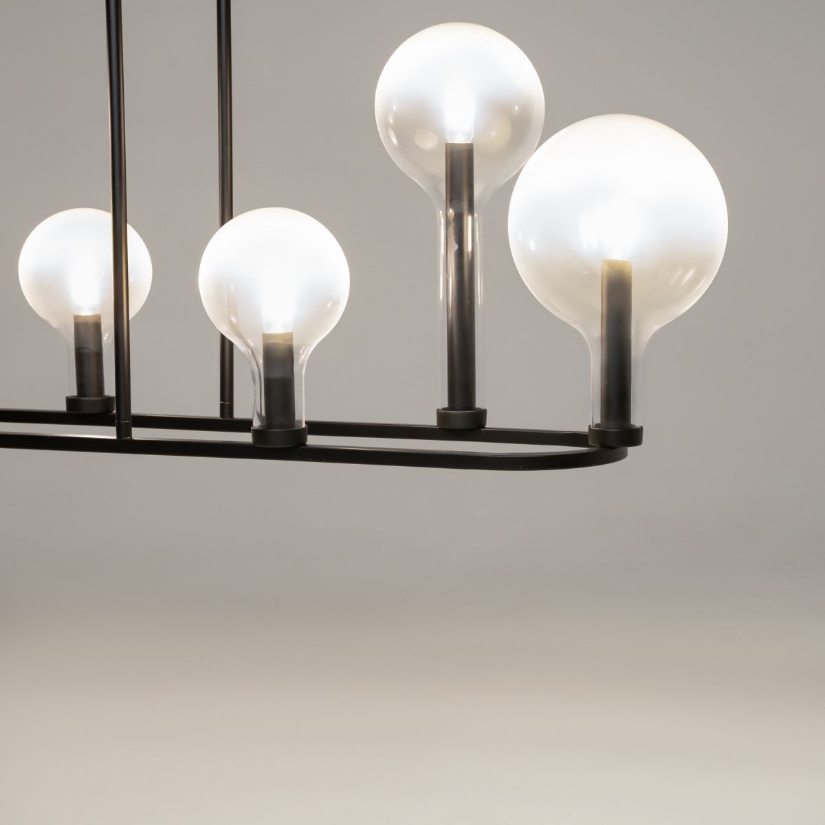 Оригинальный дизайн в американском неоклассическом стиле. Два цветовых решения: черная арматура в сочетании с белыми градиентными плафонами, арматура в цвете латуни и прозрачные плафоны. Материал арматуры — металл. Плафоны из выдувного стекла. Арочные силуэты в духе современных трендов. Подвесные светильники с регулируемой высотой и лаконичное бра. Стоит также обратить внимание на особенность источника света – к серии подходят только лампы с цоколем Е14, формы Т25.