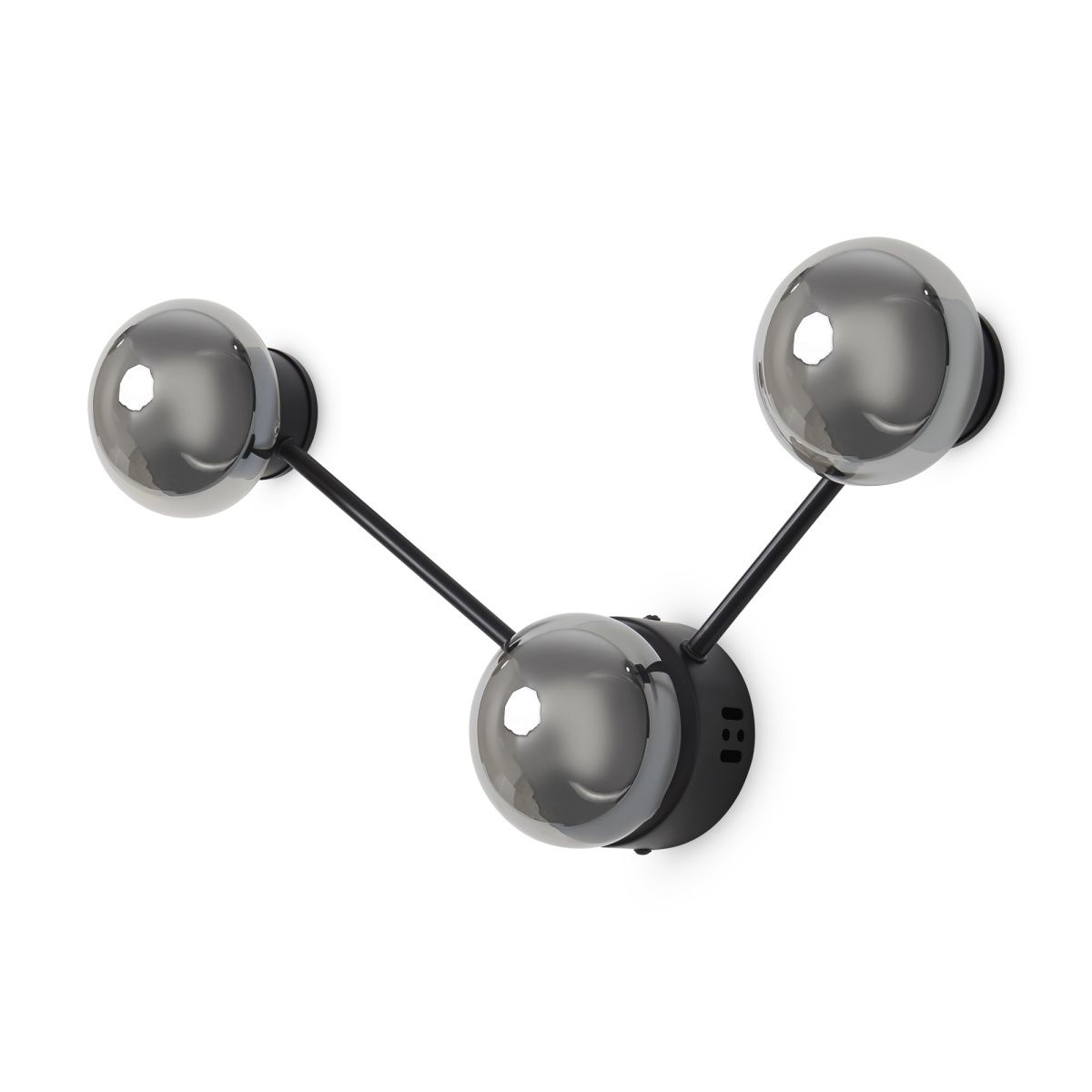Арматура металл. Цвет черный матовый. Настенные светильники с LED источником освещения и приплюснутые плафоны из стекла графитового оттенка. Необычная форма настенных светильников. Цветовая температура 3000К.