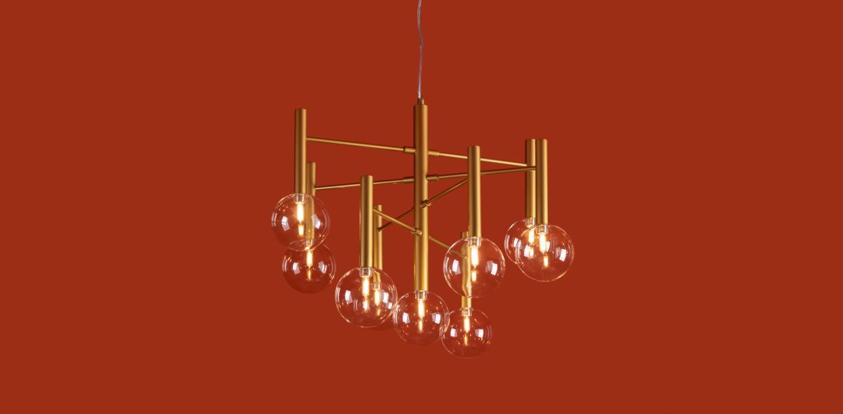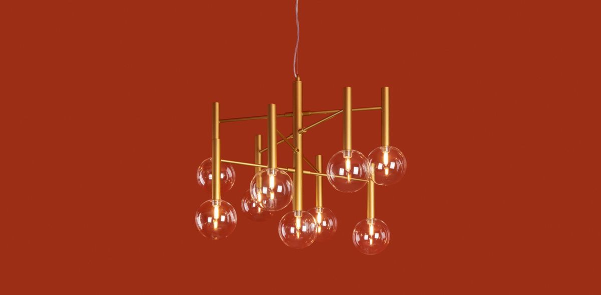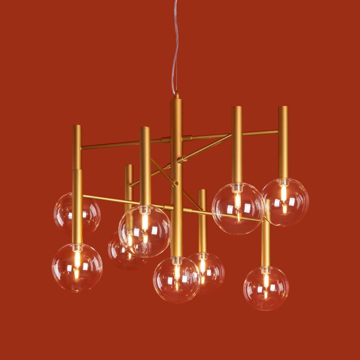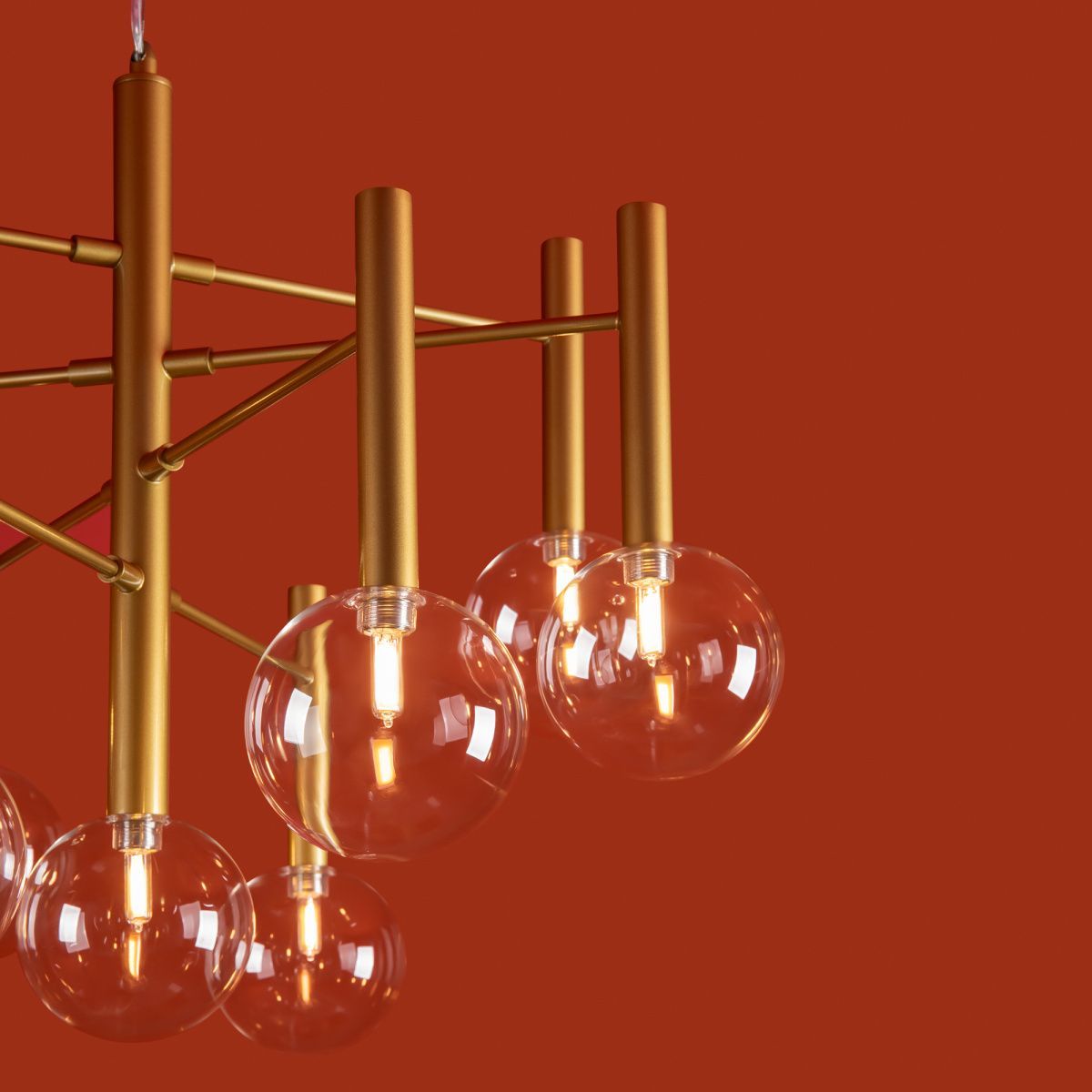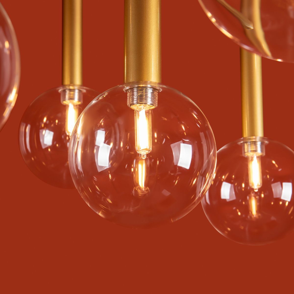 Арматура -  металл в цвете матовое золото. Светильники с прозрачным дутым стеклом. LED источник света (2700K). Круглые стеклянные абажуры создают тёплый свет. У настенного светильника 2 источника света.
