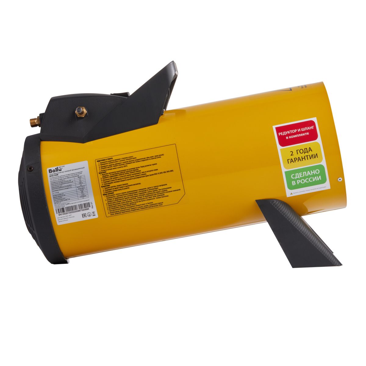 Ультракомпактные размеры и легкий вес делают пушку BHG-M самой мобильной в своем классе. Благодаря наличию многоуровневой защитной автоматики, тепловая пушка самостоятельно выключается при исчерпании запасов топлива и перекрывает подачу газа в случае погасания пламени или при перегреве.