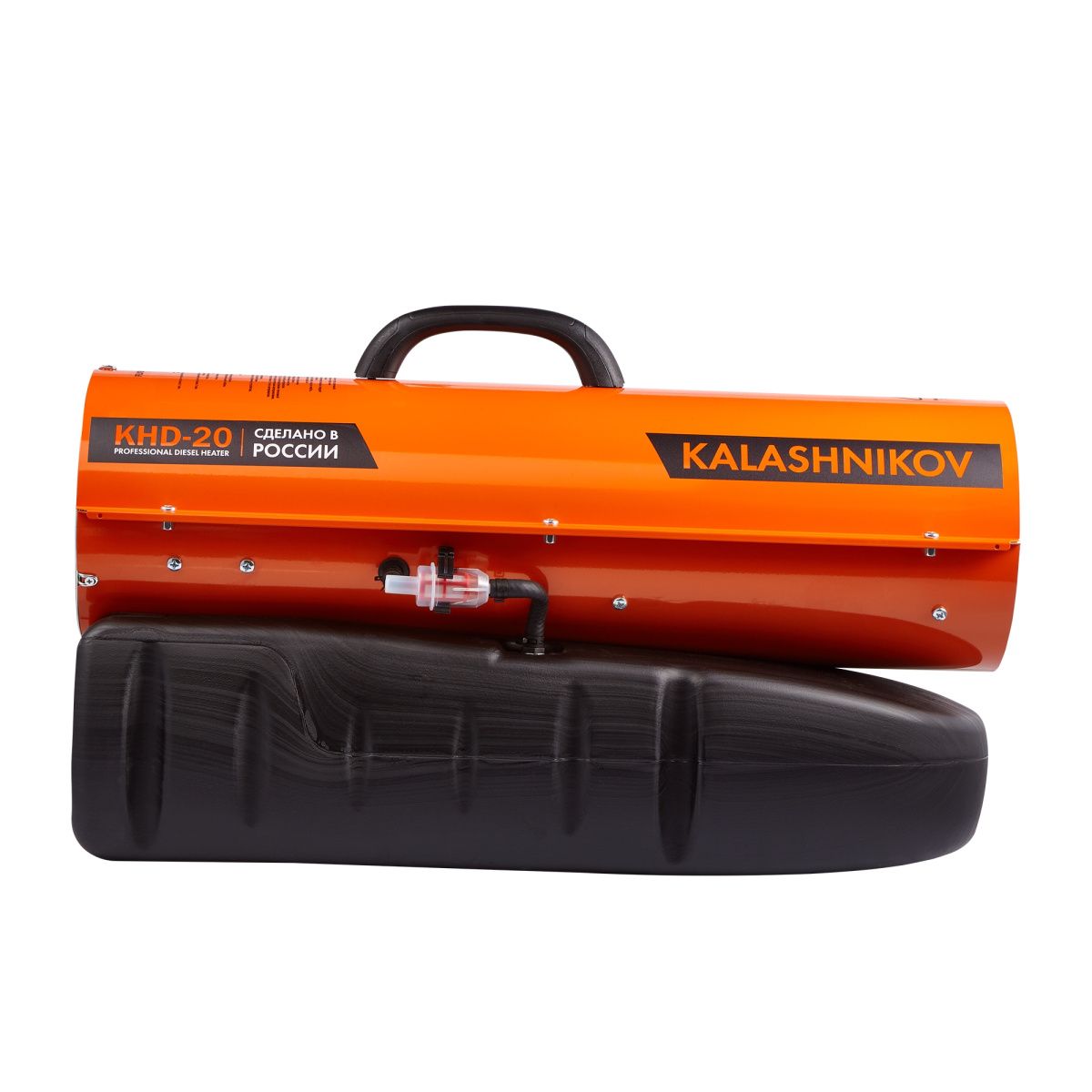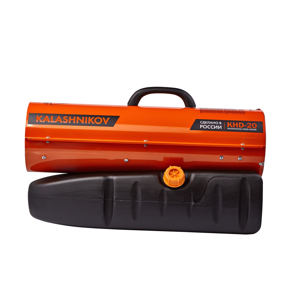 Дизельная тепловая пушка KALASHNIKOV KHD-20 – это мощный обогреватель, работающий на дизельном топливе. Предназначена для обогрева нежилых помещений и локального прогрева рабочих поверхностей. Высокий уровень КПД прибора близок к 100%, а тепловая мощность 20 кВт, производимая тепловой пушкой – вполне достаточна для использования устройства в качестве мощного генератора тепла.