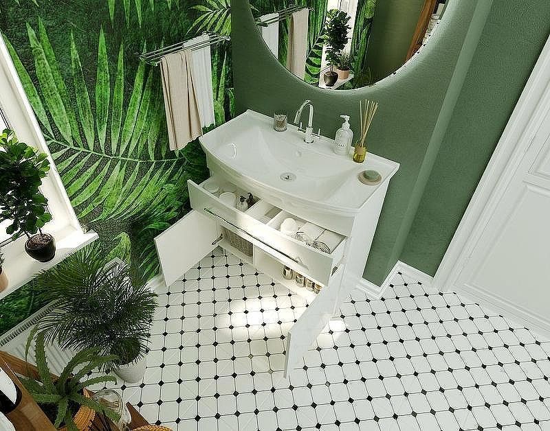 • Длинная функциональная ручка тумбы может использоваться как полотенцедержатель.