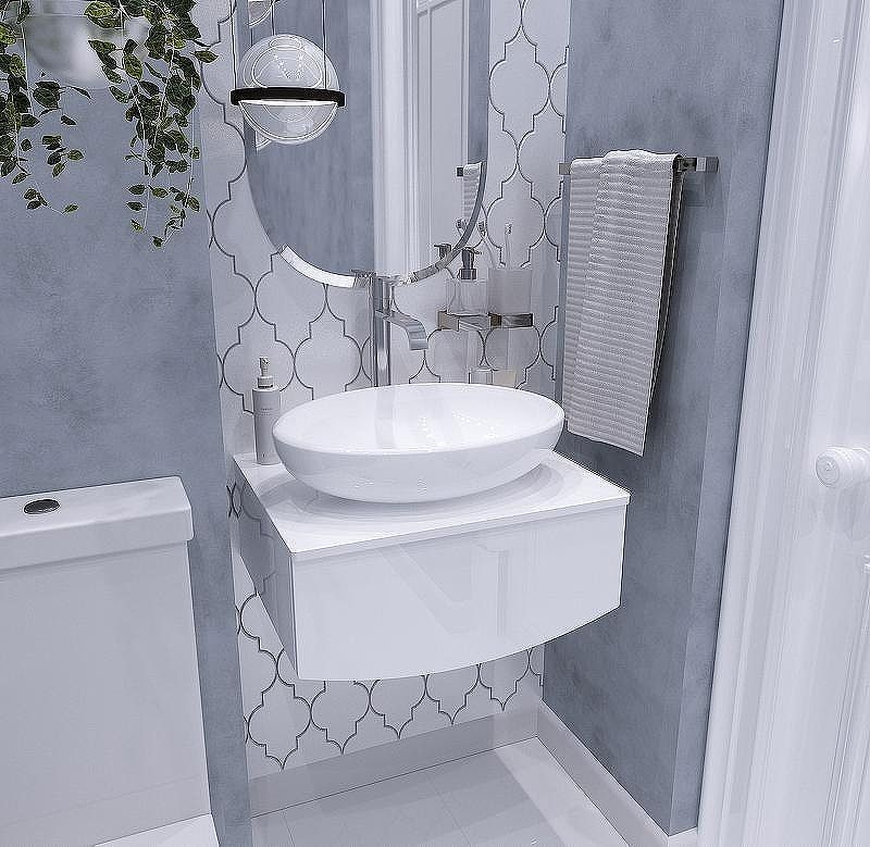 Трендовый дизайн белой тумбы под накладную раковину Nega удачно впишется в современный интерьер и создаст особую атмосферу отдыха в ванной.