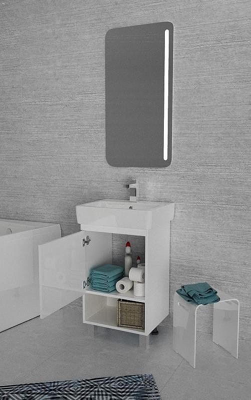 • Несмотря на небольшие габариты модели, она очень функциональна. В открытой полке тумбы удобно хранить органайзеры с необходимыми принадлежностями. А в закрытой – бытовую химию.