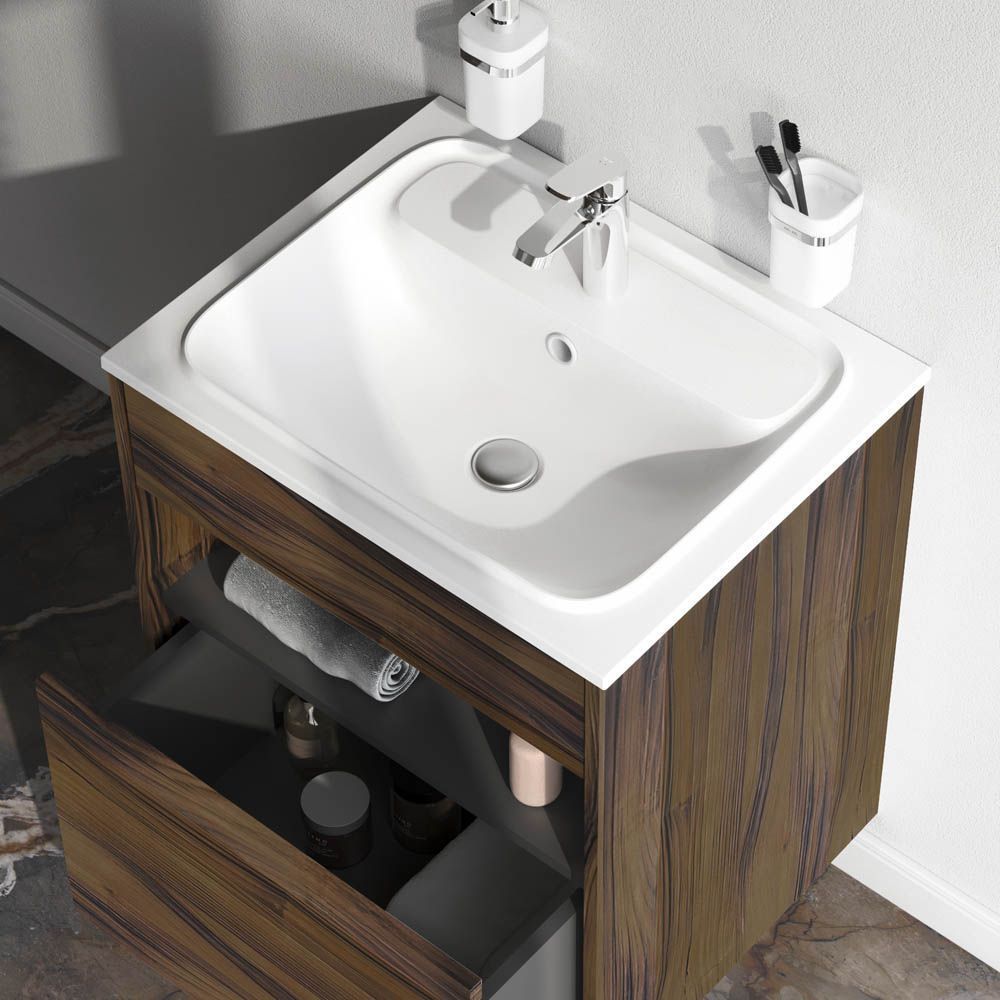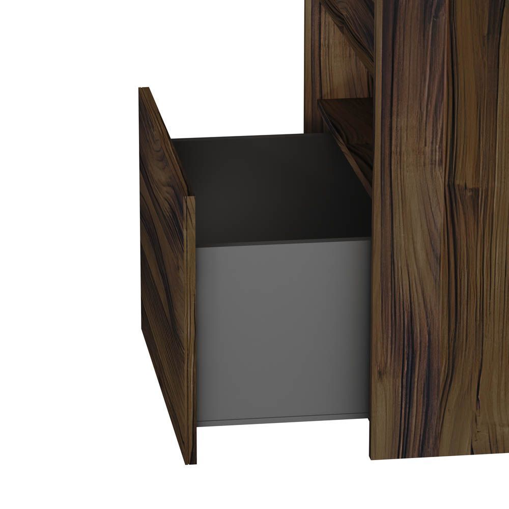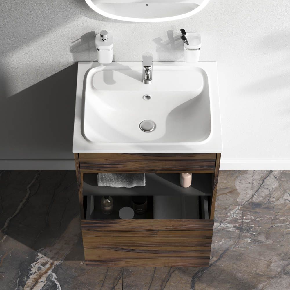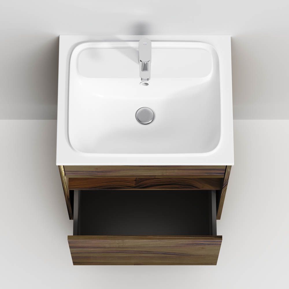Удобный выдвижной ящик и вместительная открытая ниша позволяют хранить все необходимые средства под рукой. Невероятно мягкое открытие и закрытие благодаря направляющим скрытого монтажа с системой soft close.