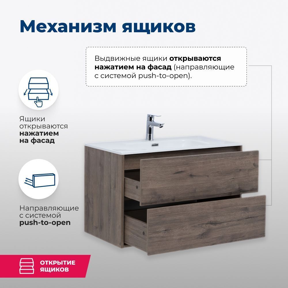Мебель обладает универсальным дизайном, система Push-to-Open обеспечивает комфорт в использовании. Главное преимущество системы: отсутствие ручек на фасадах. Фасады идеально гладкие и ровные. Благодаря отсутствию ручек и фрезеровок за мебелью несложно ухаживать.