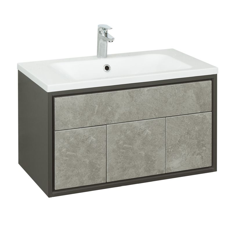 Подвесная тумба Уэльс 80 от AQUATON в стиле лофт создана для истинных ценителей индустриального шика. Глубокий благородный цвет фасадов авеллино грей в сочетании с внутренней отделкой в оттенке тёмный шоколад придаёт модели актуальное звучание, отражая эстетику современной роскоши. Корпус из влагостойкой ЛДСП и фасады из МДФ покрыты матовой пленкой. Отсутствие лицевой фурнитуры подчеркивает сдержанный лаконичный дизайн модели. Тумба предлагает оптимальную систему организации пространства: два вместительных ящика, верхний и центральный, выдвигаются простым нажатием благодаря удобной системе push-to-open, а справа и слева за фасадами-створками скрыты дополнительные отсеки для хранения.