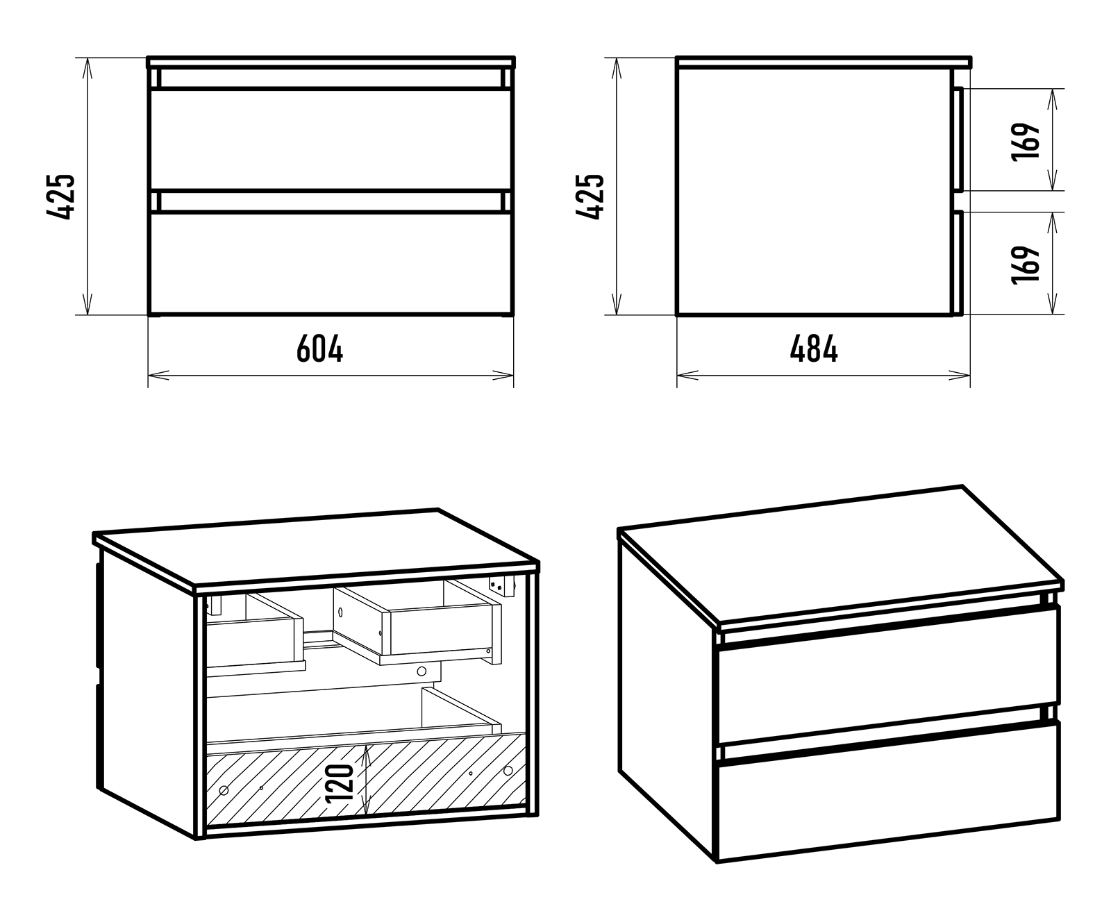 Тумба под раковину Brevita Dakota DAK-09060-19/02-2Я 60х48х43 подвесная цвет черный/коричневый