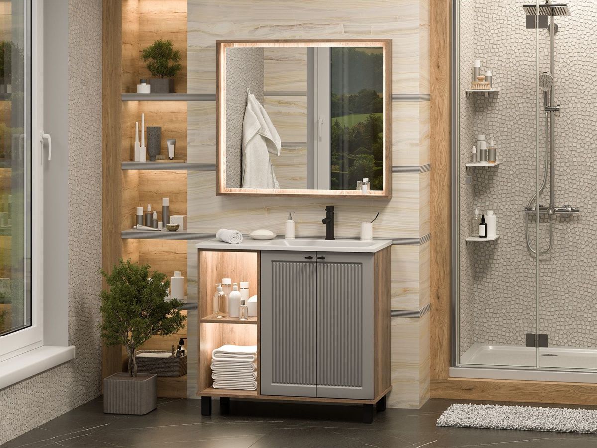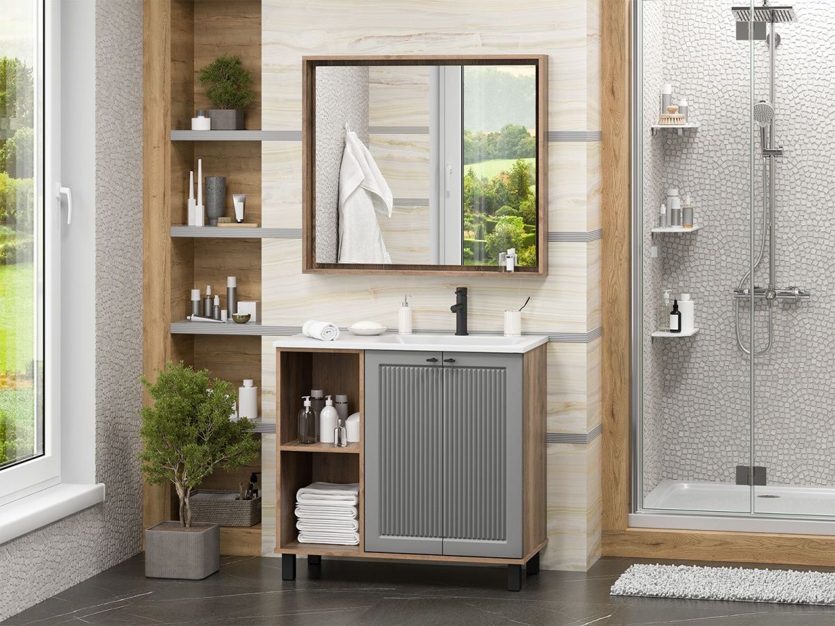 —Тумба под раковину Brevita Lumus LUM-06090-0842ЯP 90х40 напольная цвет серый/коричневый