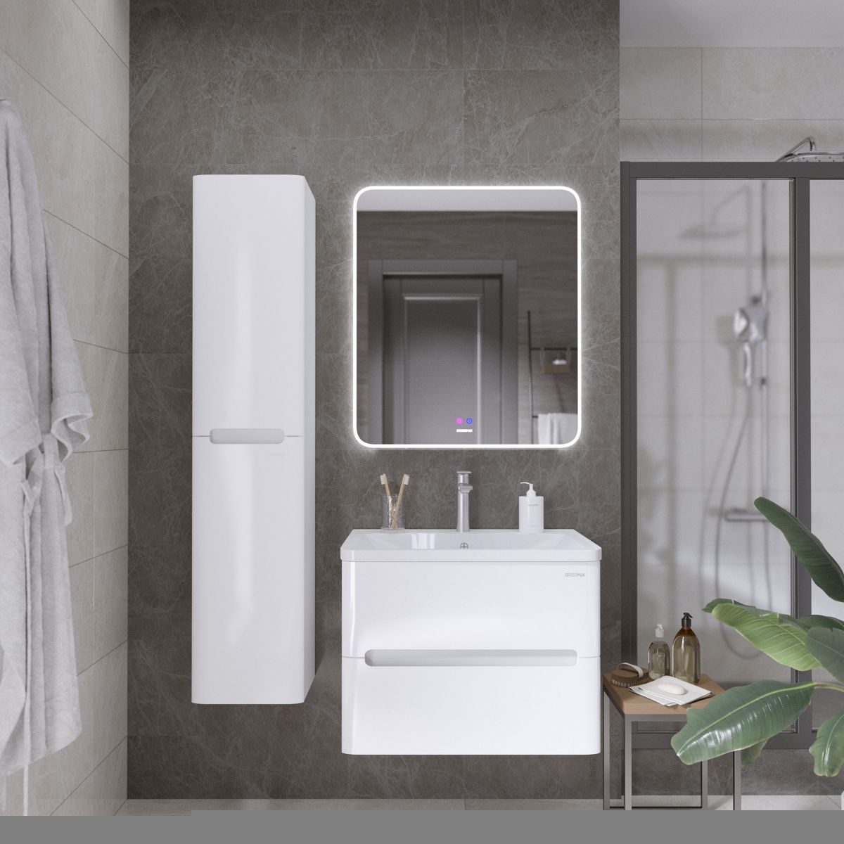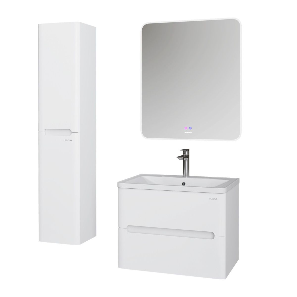 Тумба выполнена из влагостойкого МДФ покрытая белой глянцевой краской, устойчивая к перепадам температур и высокой влажности, крепится к стене и занимает мало места.