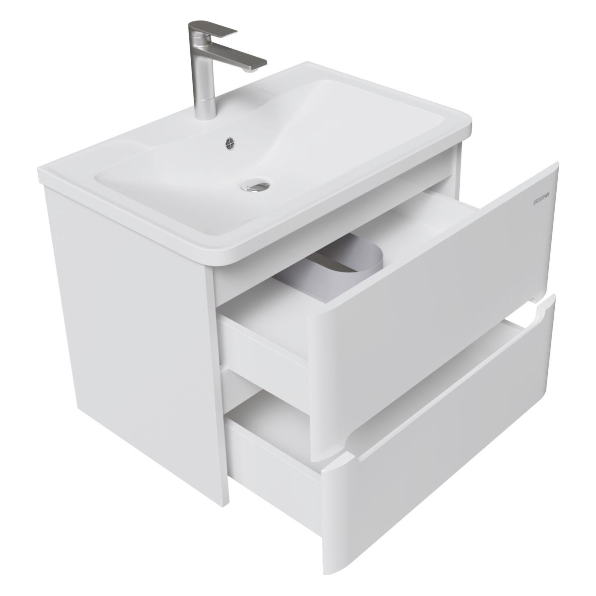 Тумба снабжена двумя ящиками, которые укомплектованы направляющими плавного закрывания, ящики предназначены для хранения различных предметов.