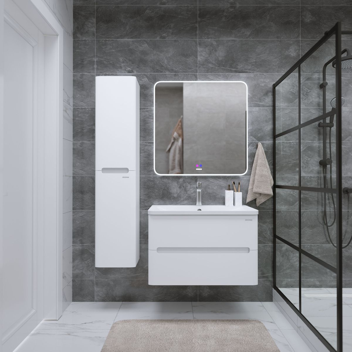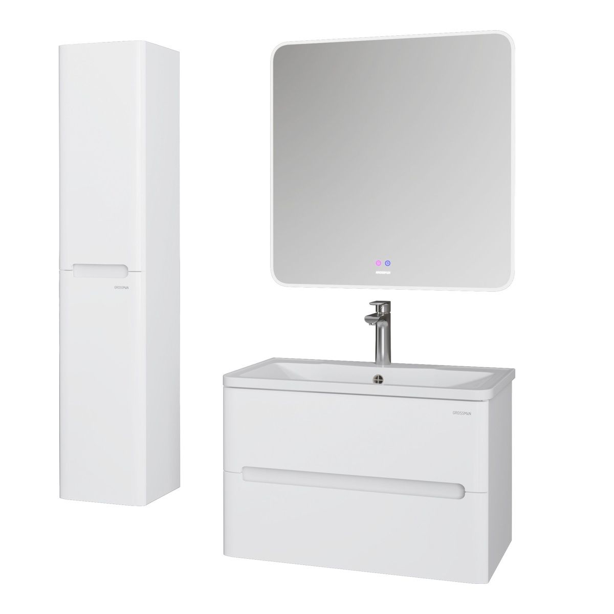 Тумба выполнена из влагостойкого МДФ покрытая белой глянцевой краской, устойчивая к перепадам температур и высокой влажности, крепится к стене и занимает мало места.