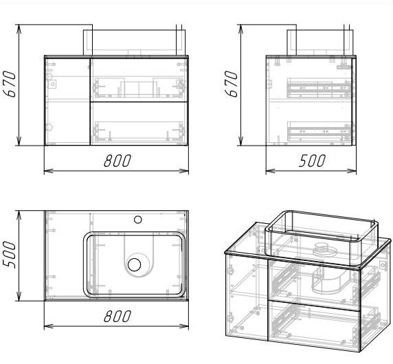Тумба снабжена двумя выдвижными ящиками, которые укомплектованы шариковыми направляющими с системой плавного закрывания. Дополнительное отделение слева с полкой позволит расширить место для хранения.