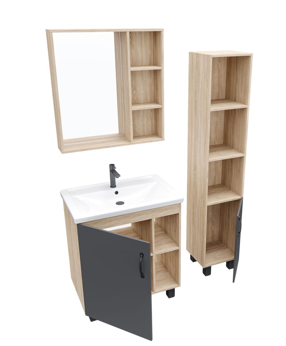 Корпус тумбы выполнен из ЛДСП, фасад - из МДФ в матовой пленке, устойчивый к перепадам температур и высокой влажности.