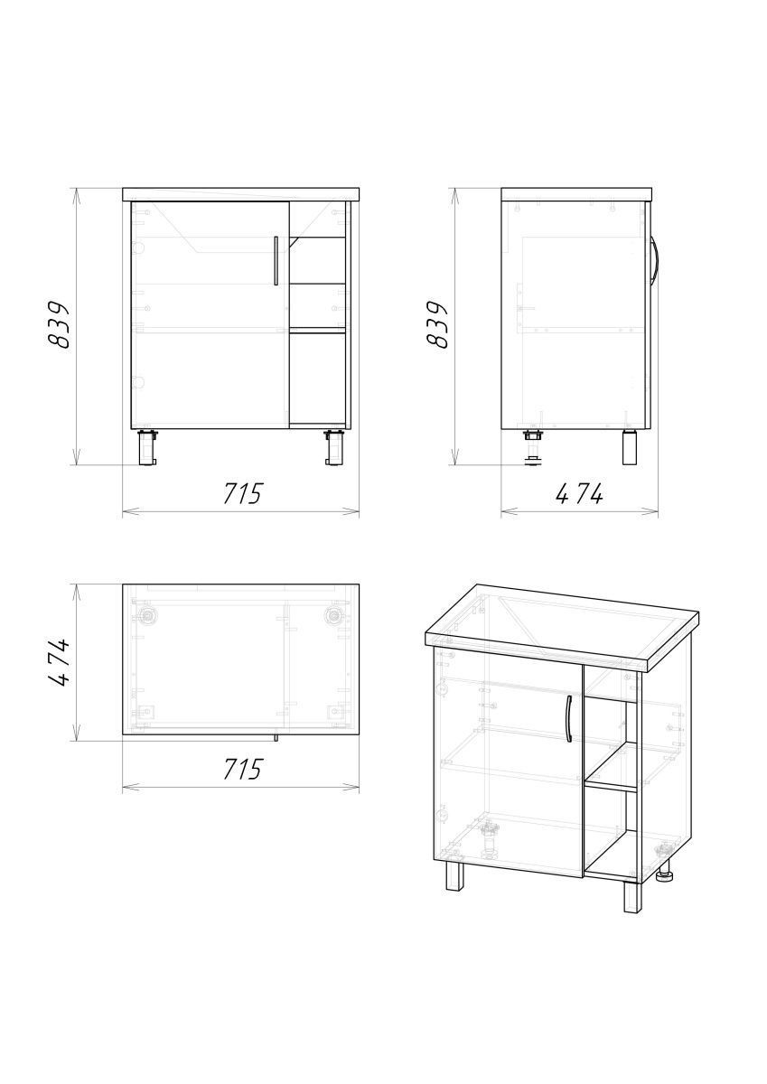 Черная металлическая ручка и 4 ножки (2 декоративных черных и 2 пластиковых) идут в комплекте с тумбой.