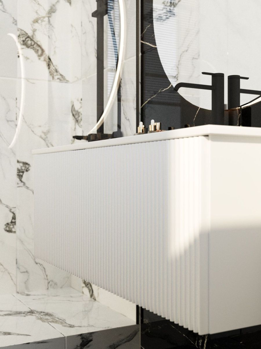 Новая коллекция Terra - это история долгого и кропотливого поиска уникального, ни на кого не похожего дизайна, в сочетании с современным качеством. Ультратонкая и идеально ровная раковина, механизм открывания push-to-open, плавное закрывание дверей и ящиков. Почувствуйте комфорт в своем доме с нашей новой стильной коллекцией.