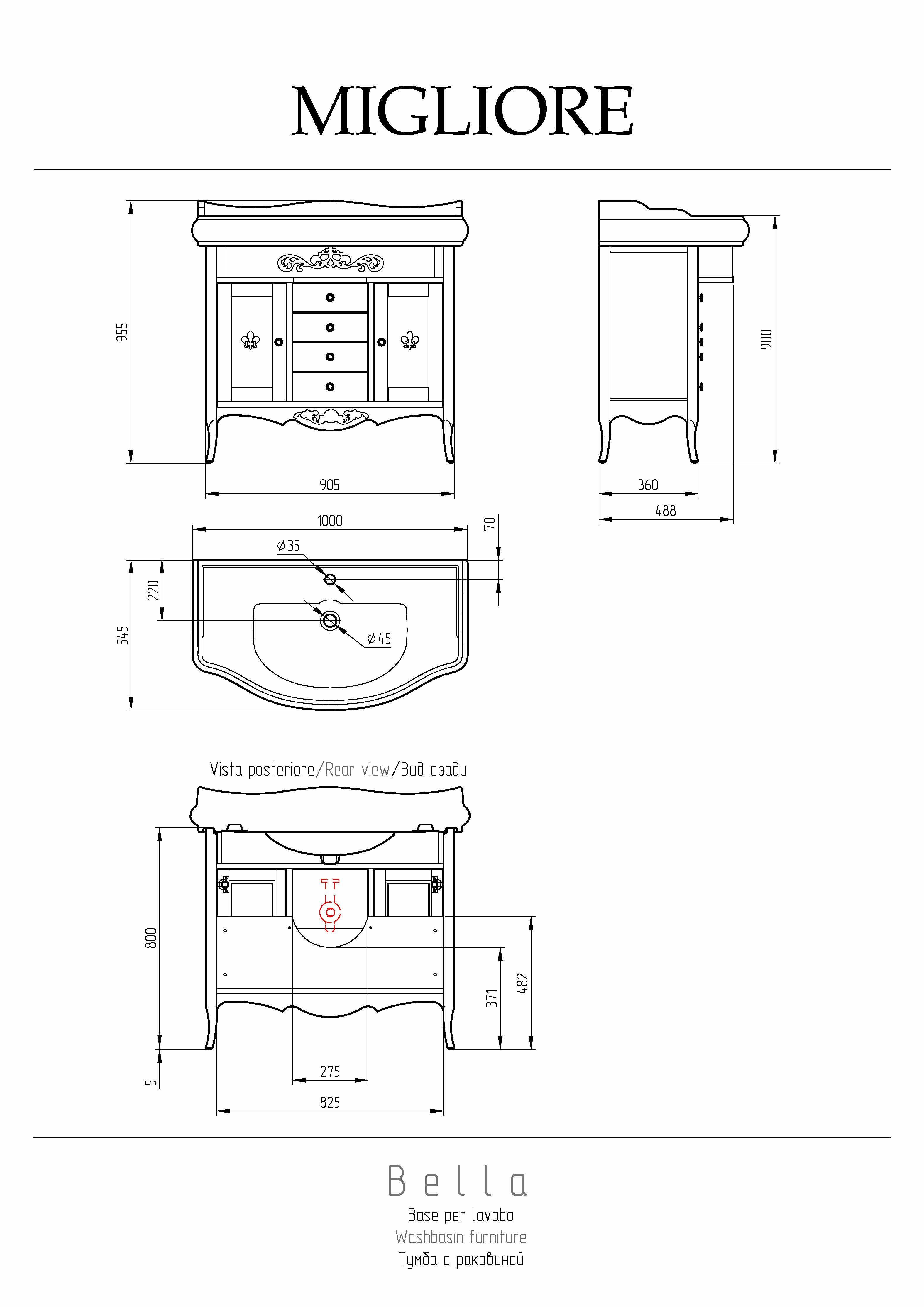 —Тумба под раковину Migliore BELLA 25932 91х49х81 напольная цвет орех