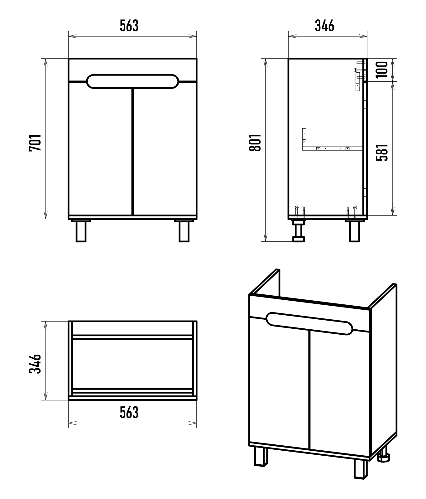 —Тумба под раковину Misty Сканди Э-Ска01060-0150-2Д 56х35х70 напольная