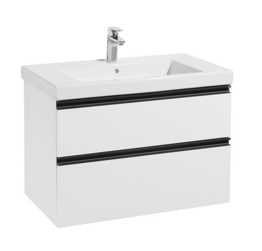Модуль под раковину Domi с черной матовой металлической ручкой во всю ширину фасада и направляющими с функцией soft-close. Нижняя часть ручки обработана под углом, что предотвращает скопление воды и пыли. Ручка защищает фасады модуля от попадания капель воды с раковины, а также защищает углы модуля от ударов и износа. Внутренняя отделка ящиков выполнена в цвете бежевый текстиль, приятна на ощупь и предотвращает скольжение предметов. Пространство верхнего ящика разделено на три части, что позволяет хранить предметы для ванной комнаты в идеальном порядке. По желанию модуль Domi может комплектоваться черными матовыми опорами, которые представлены в двух вариантах: с полотенцедержателем и без.