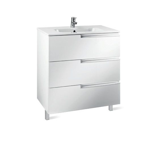 Тумба для раковины Victoria Nord Ice Edition в современном стиле от испанского бренда Roca, выполненная из влагостойкой высококачественной ЛДСП и МДФ, с ящиками с доводчиками.