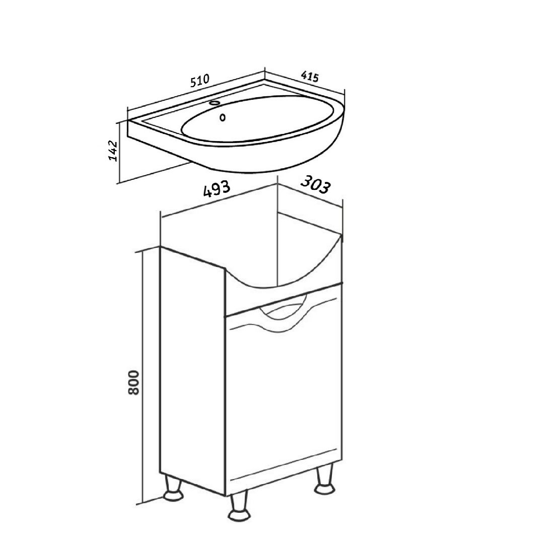 —Тумба под раковину Runo Фортуна 00000001135 50х30 напольная цвет белый