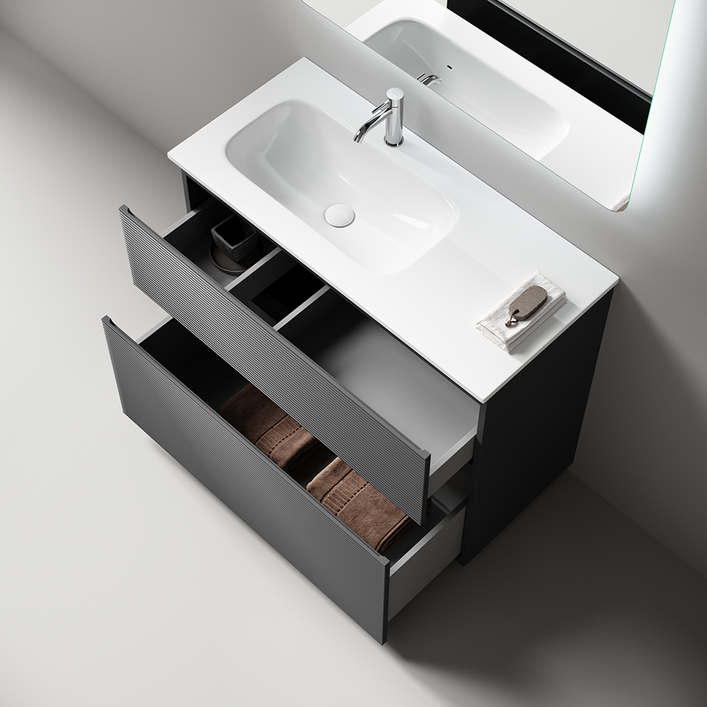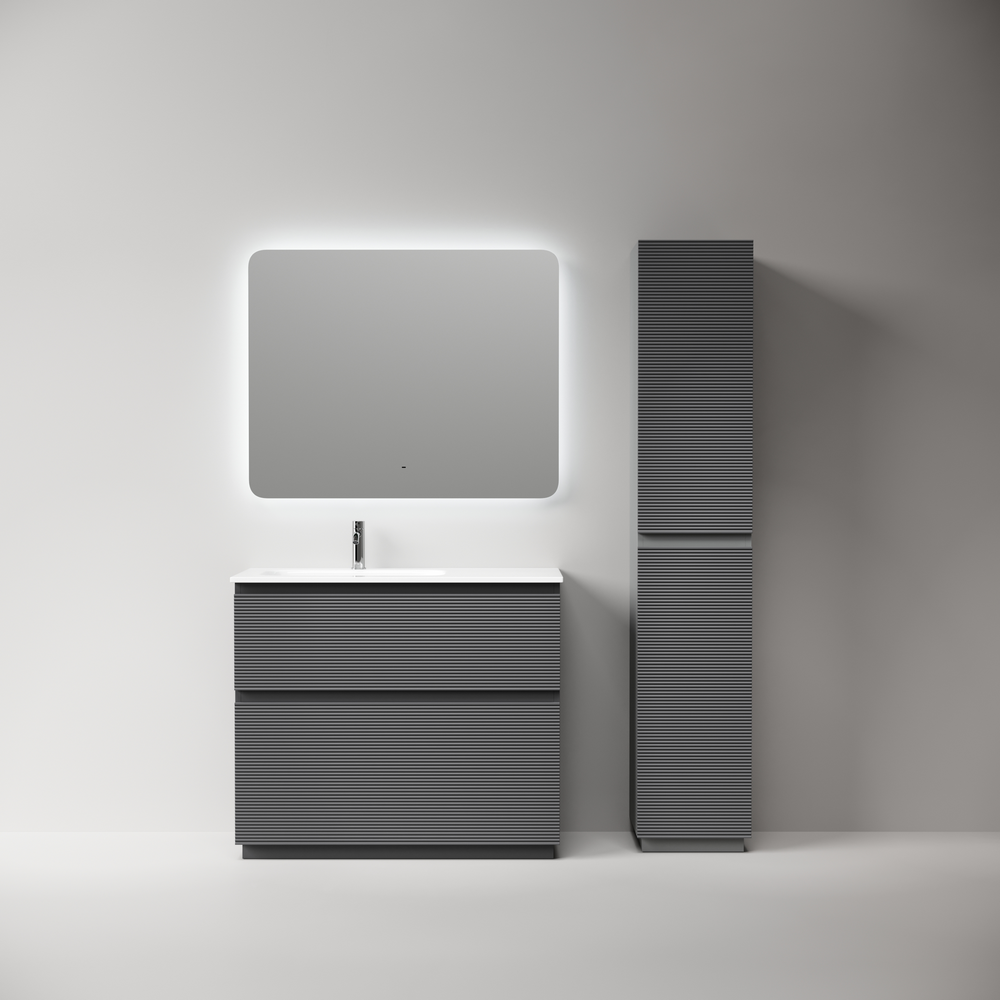 На изображении тумба Folk Floor представлена с зеркалом RAY, смесителем из коллекции ETNA и раковиной Grace CN7014