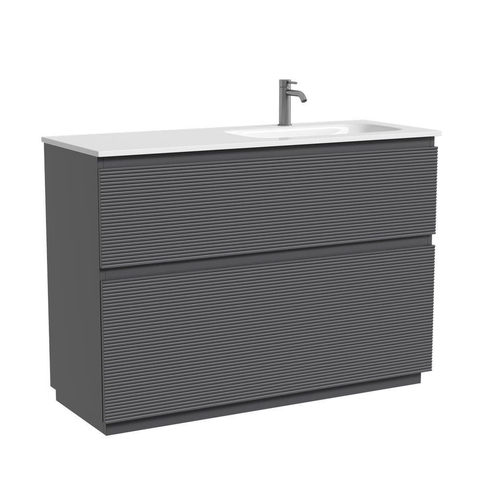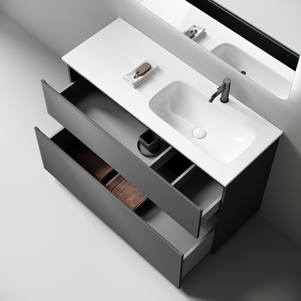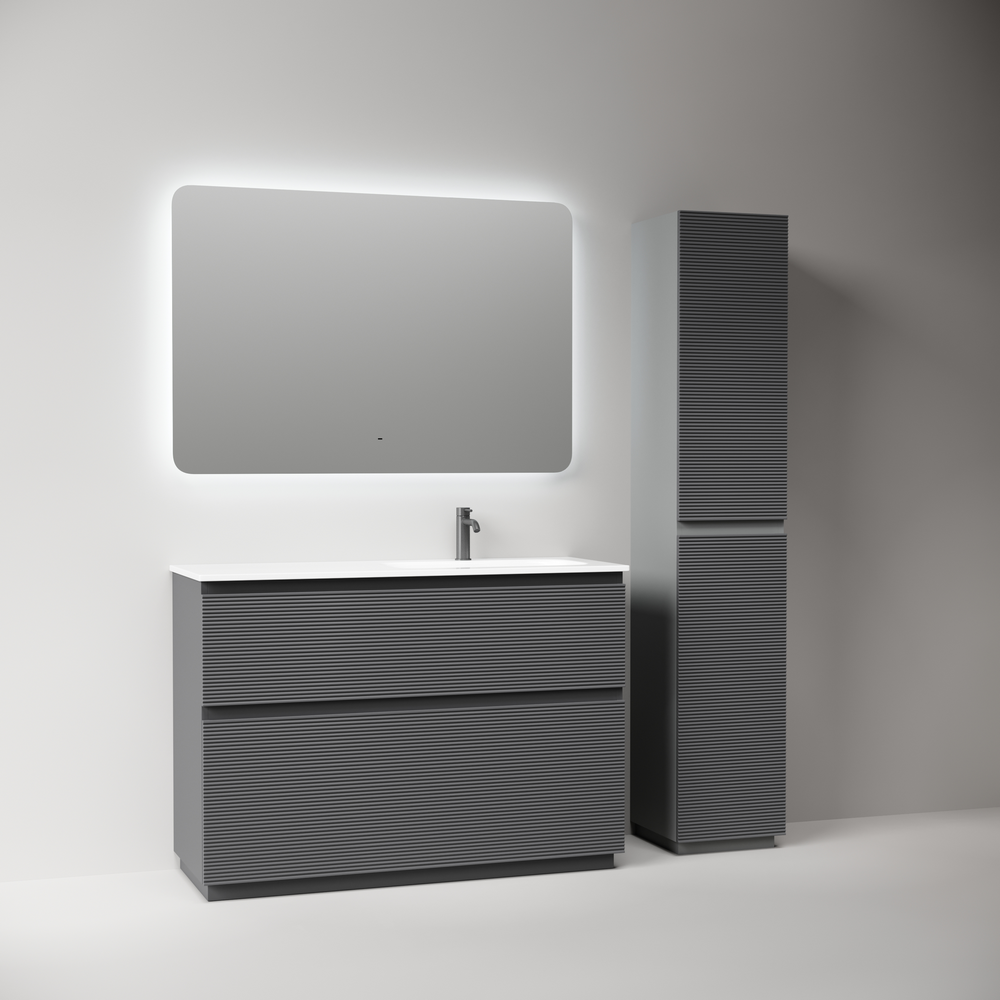 На изображении тумба Folk Floor представлена с зеркалом RAY, смесителем из коллекции ETNA и раковинами Grace CN7021S
