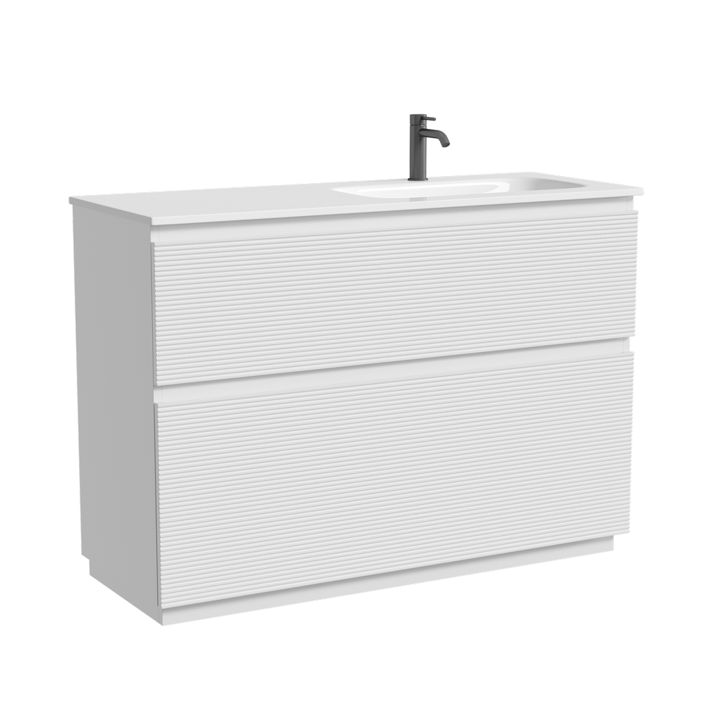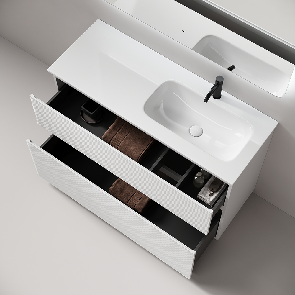 На изображении тумба Folk Floor представлена с зеркалом RAY, смесителем из коллекции ETNA и раковинами Grace CN7021