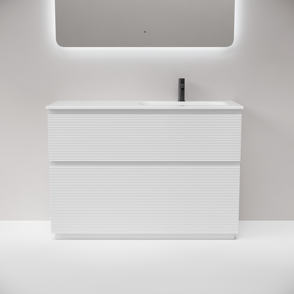 Каркас и фасад тумбы выполнен из МДФ, покрытие ПВХ - пленка