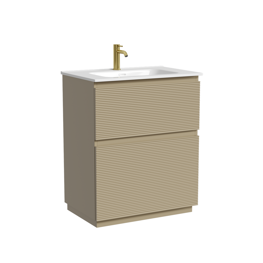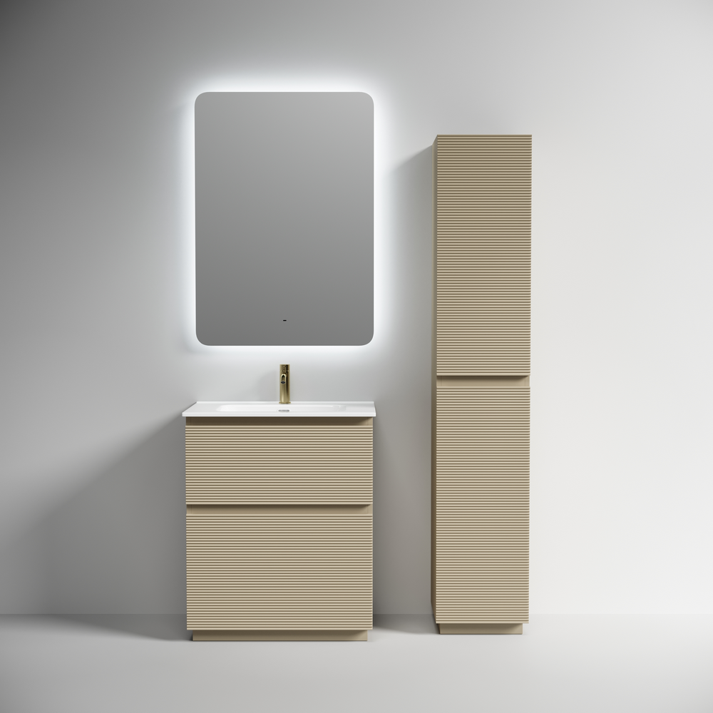 На изображении тумба Folk Floor представлена с зеркалом RAY, смесителем из коллекции ETNA и раковиной Element CN7007
