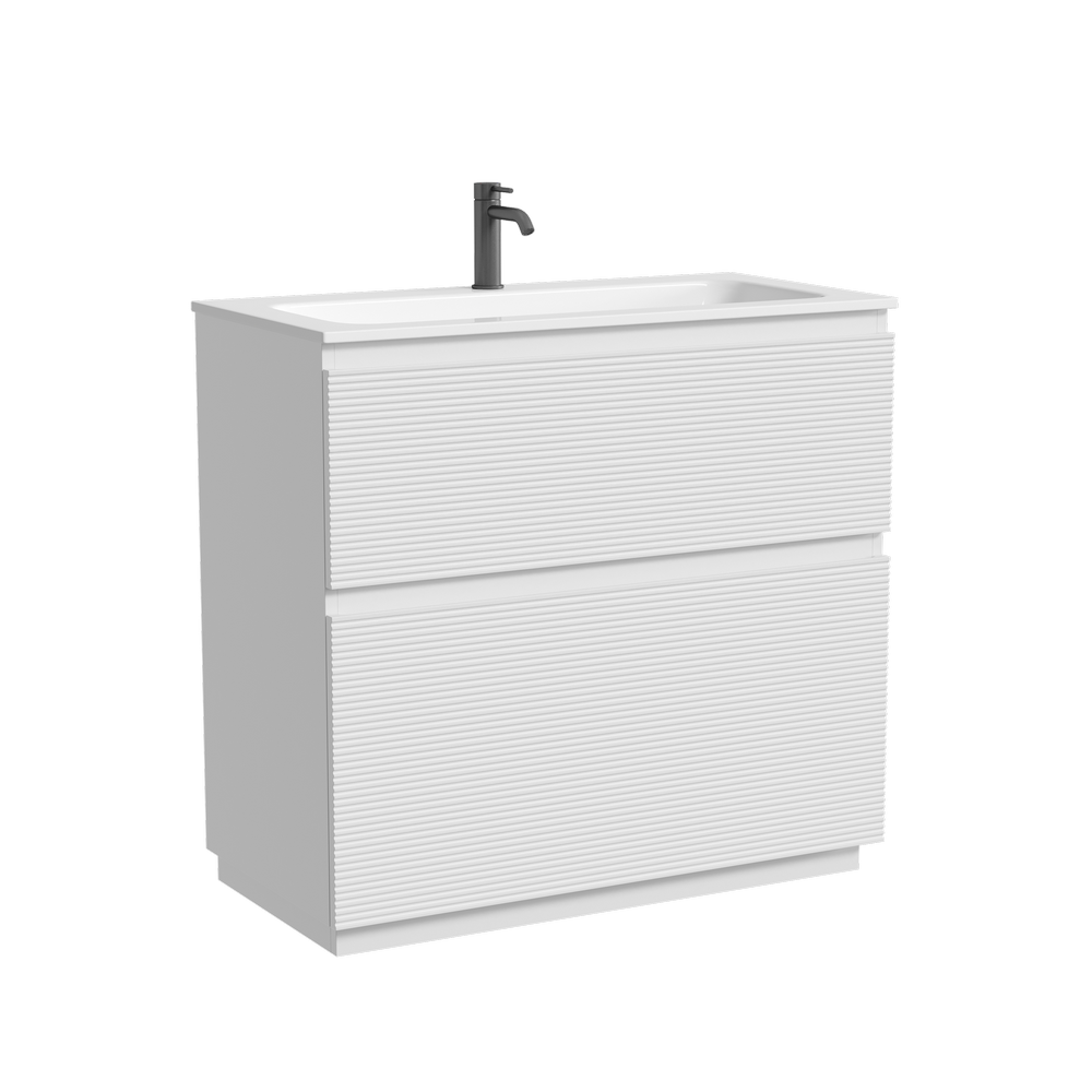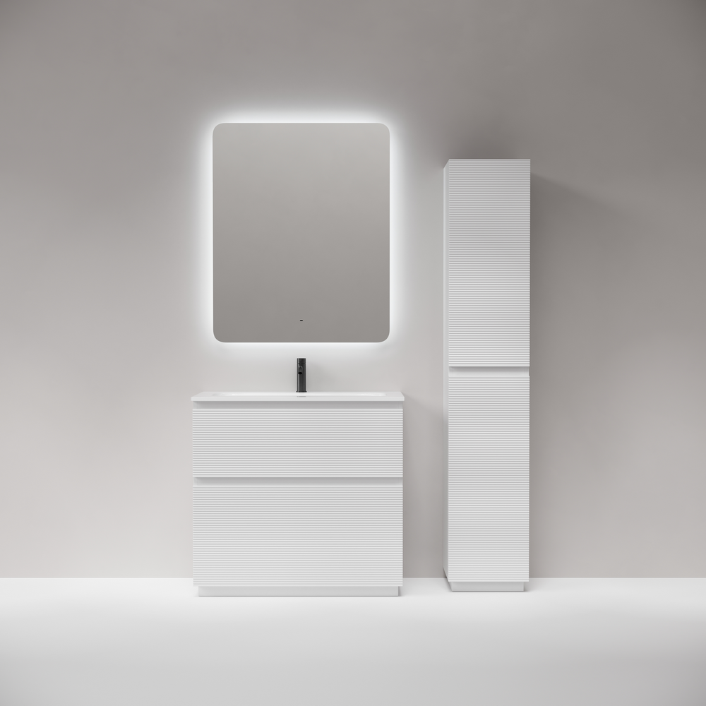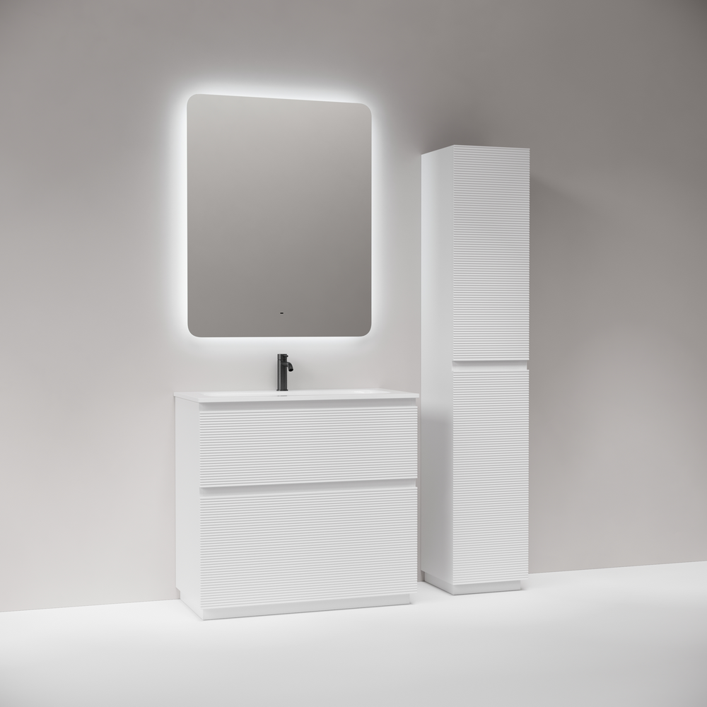 На изображении тумба Folk Floor представлена с зеркалом RAY, смесителем из коллекции ETNA и раковиной Grace CN7019
