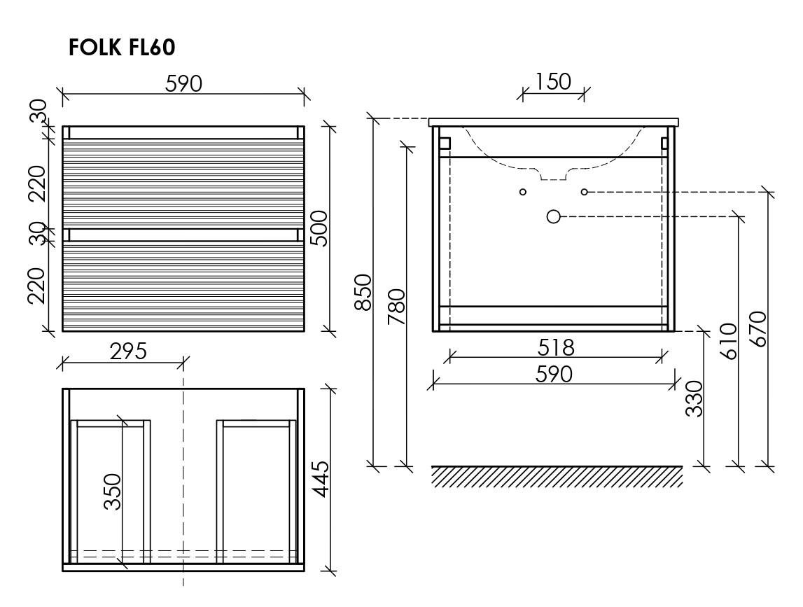 —Тумба под раковину Sancos FOLK FL60W 60х40 подвесная цвет белый